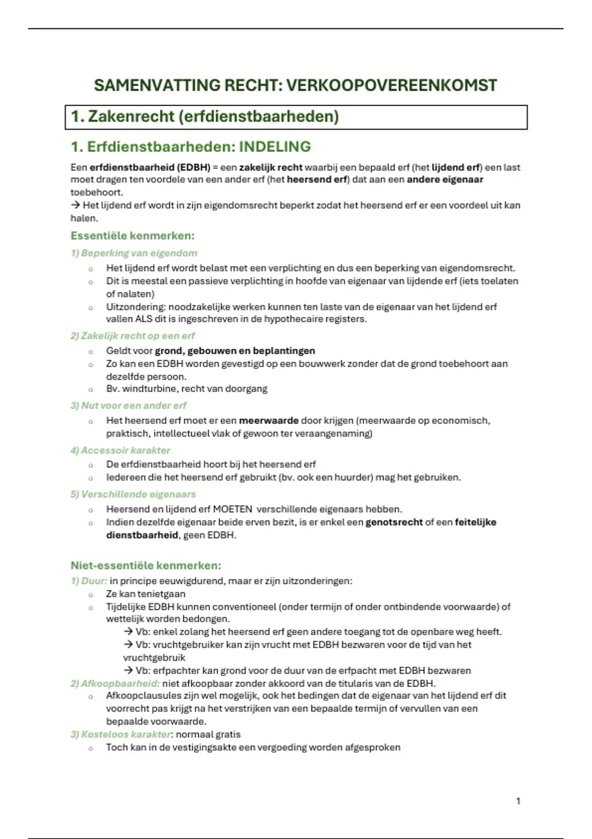 SAMENVATTING RECHT: VERKOOPOVEREENKOMST