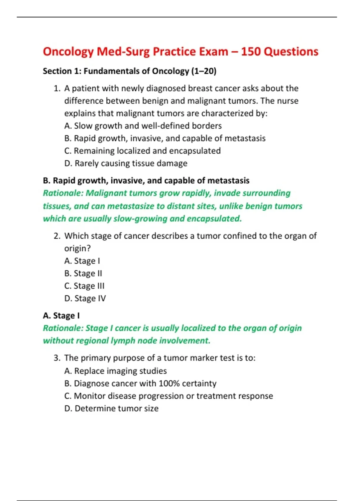Section 1: Fundamentals of Oncology (1–20)