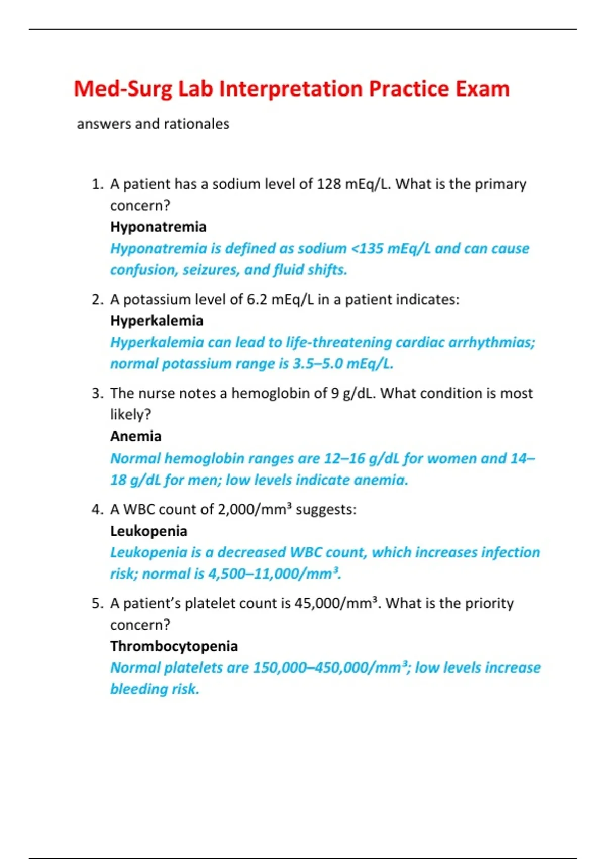 1. A patient has a sodium level of 128 mEq/L. What is the primary