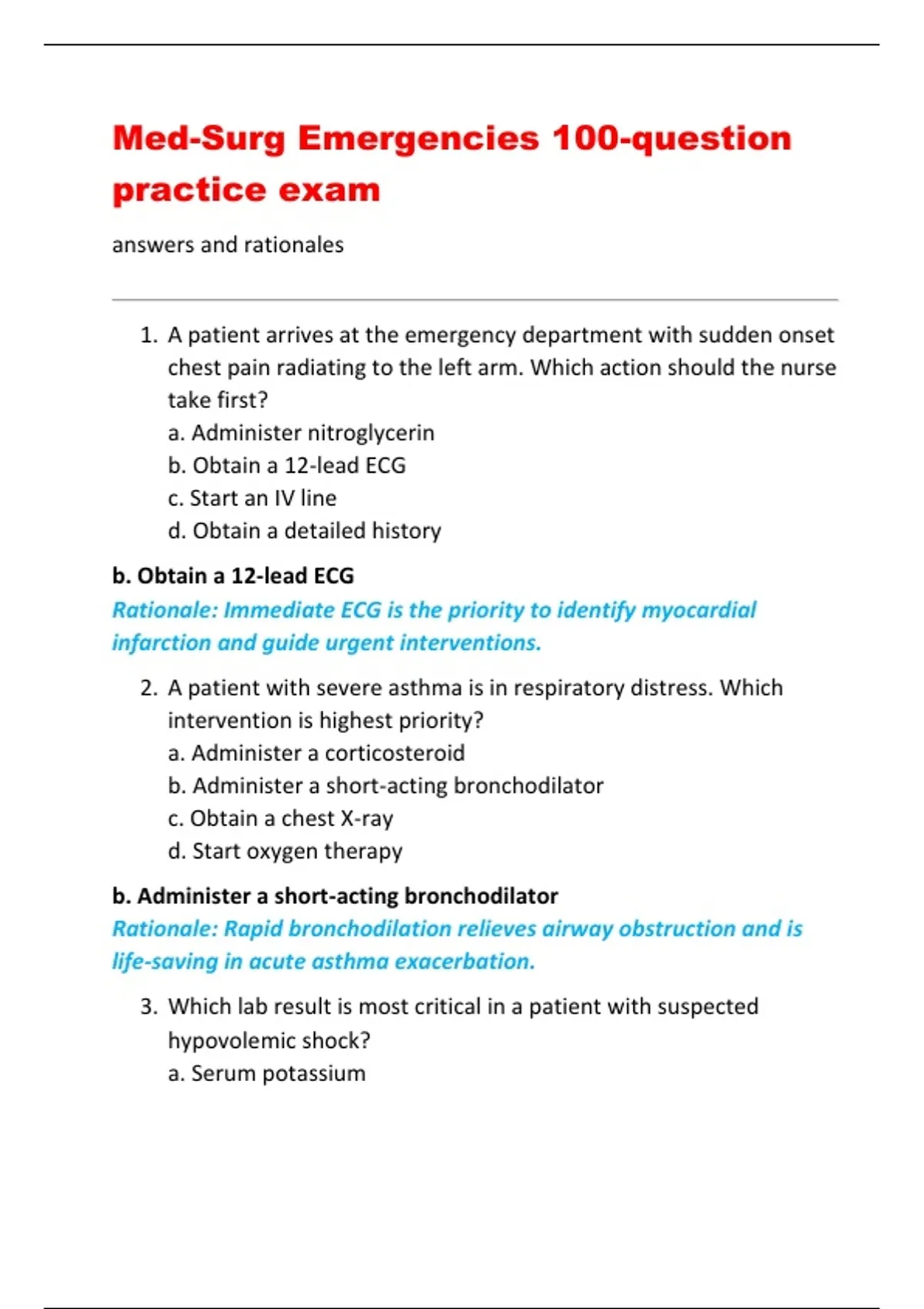 Med-Surg Emergencies 100-question
