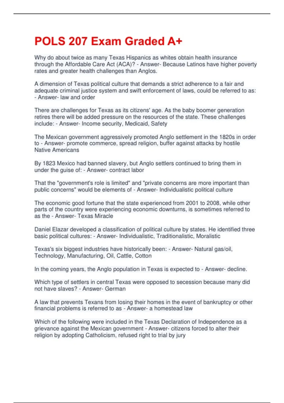 as the - Answer- Texas Miracle