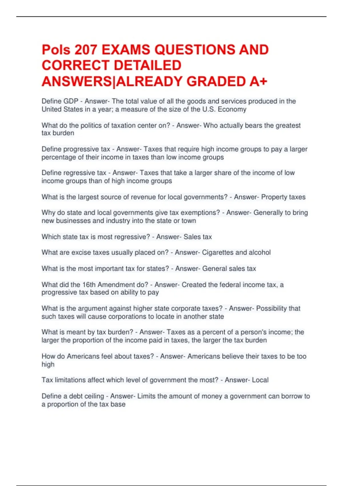 Pols 207 EXAMS QUESTIONS AND CORRECT DETAILED ANSWERS|ALREADY GRADED A+