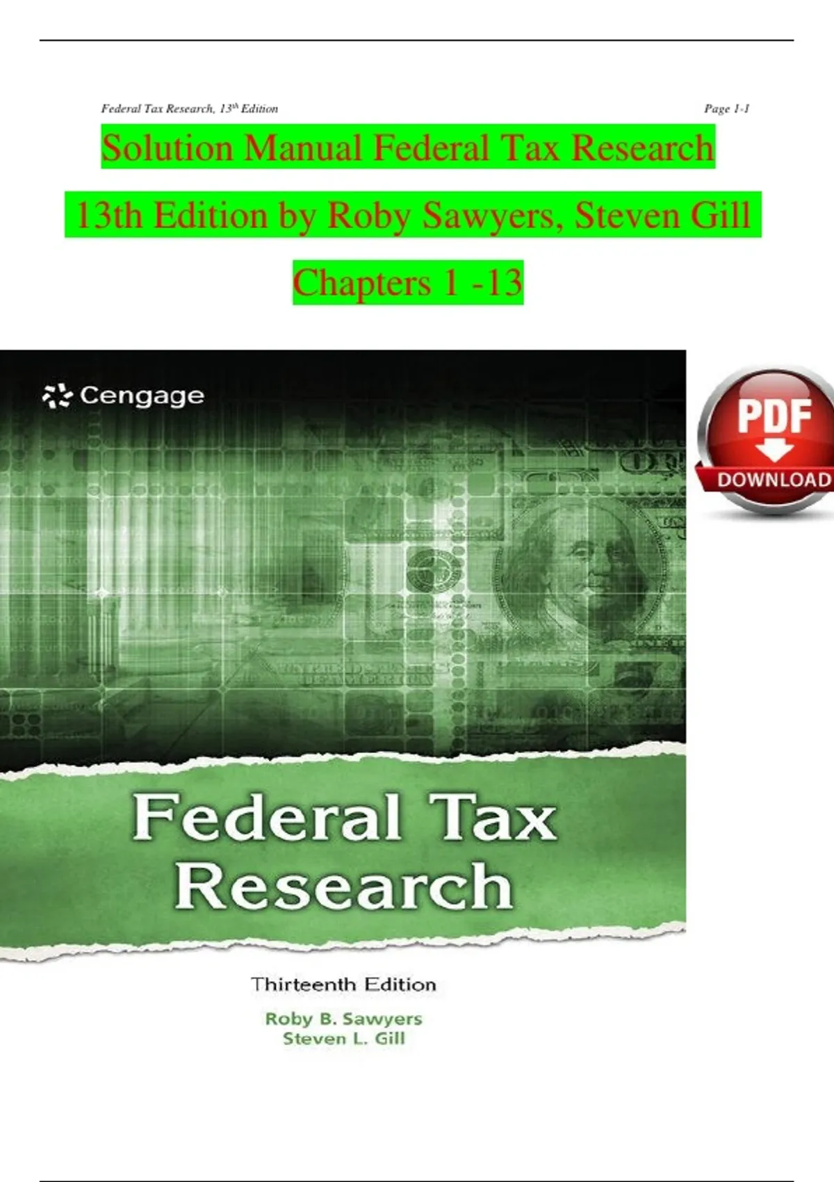 Test Bank for Federal Tax Research, 13th Edition – Roby Sawyers & Steven Gill