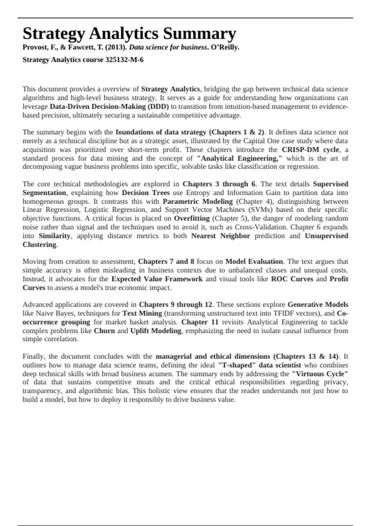 Samenvatting Data Science for Business - Strategy Analytics (325132-M-6) (325132-M-6)