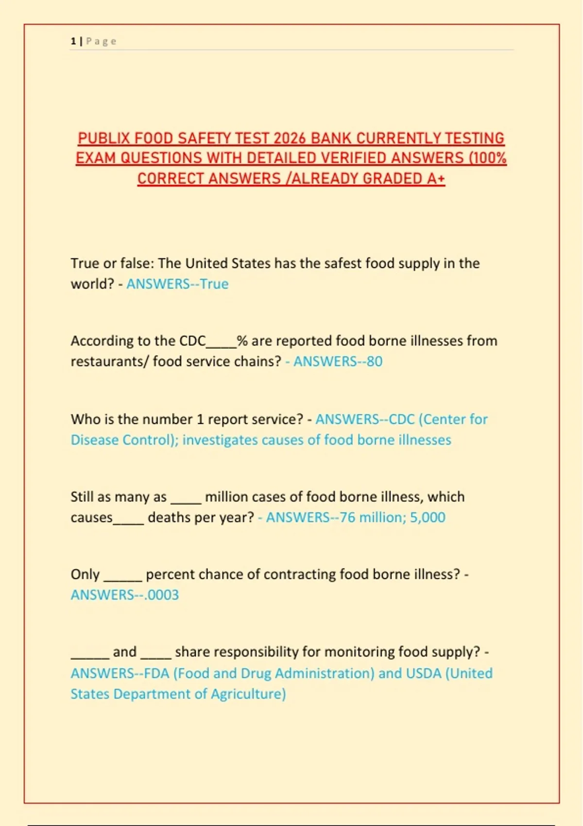 PUBLIX FOOD SAFETY TEST 2026 BANK CURRENTLY TESTING