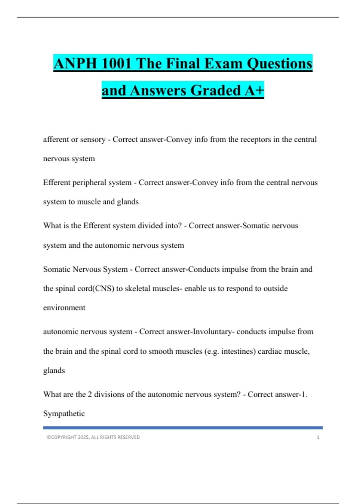 Efferent peripheral system - Correct answer-Convey info from the central nervous
