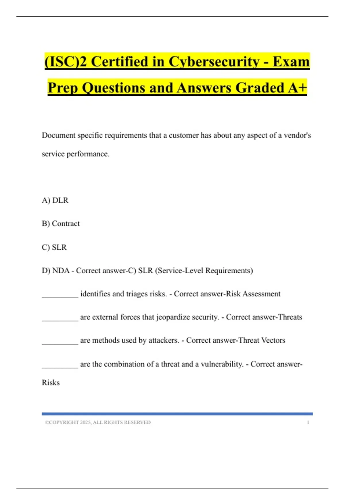 D) NDA - Correct answer-C) SLR (Service-Level Requirements)