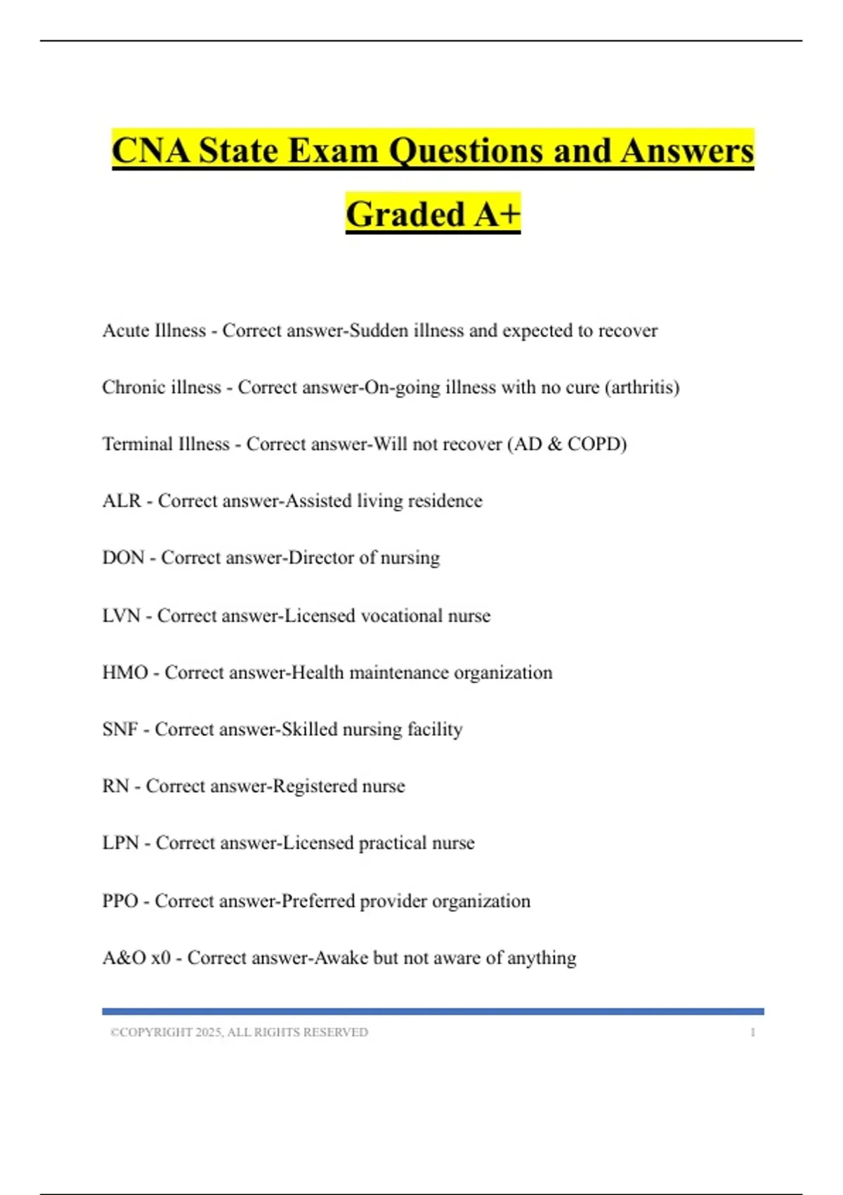 CNA State Exam Questions and Answers Graded A+