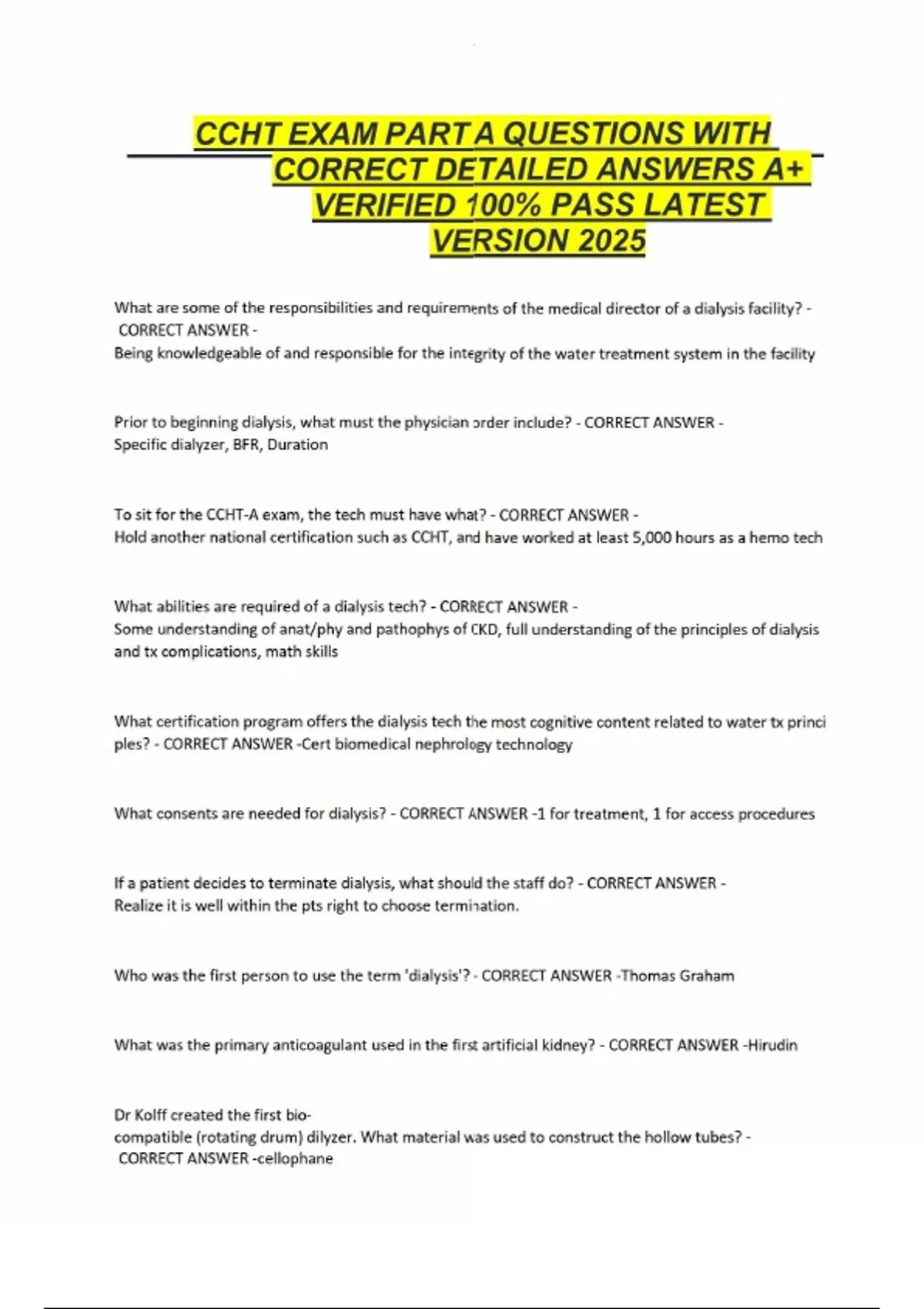 CCHT EXAM PART A QUESTIONS WITH CORRECT DETAILED ANSWERS A+ VERIFIED 100% PASS LATEST VERSION 2025 CCHT EXAM PART A QUESTIONS WITH CORRECT DETAILED ANSWERS A+ VERIFIED 100% PASS LATEST VERSION 2025 CCHT EXAM PART A QUESTIONS WITH CORRECT DETAILED ANSWERS A+ VERIFIED 100% PASS LATEST VERSION 2025