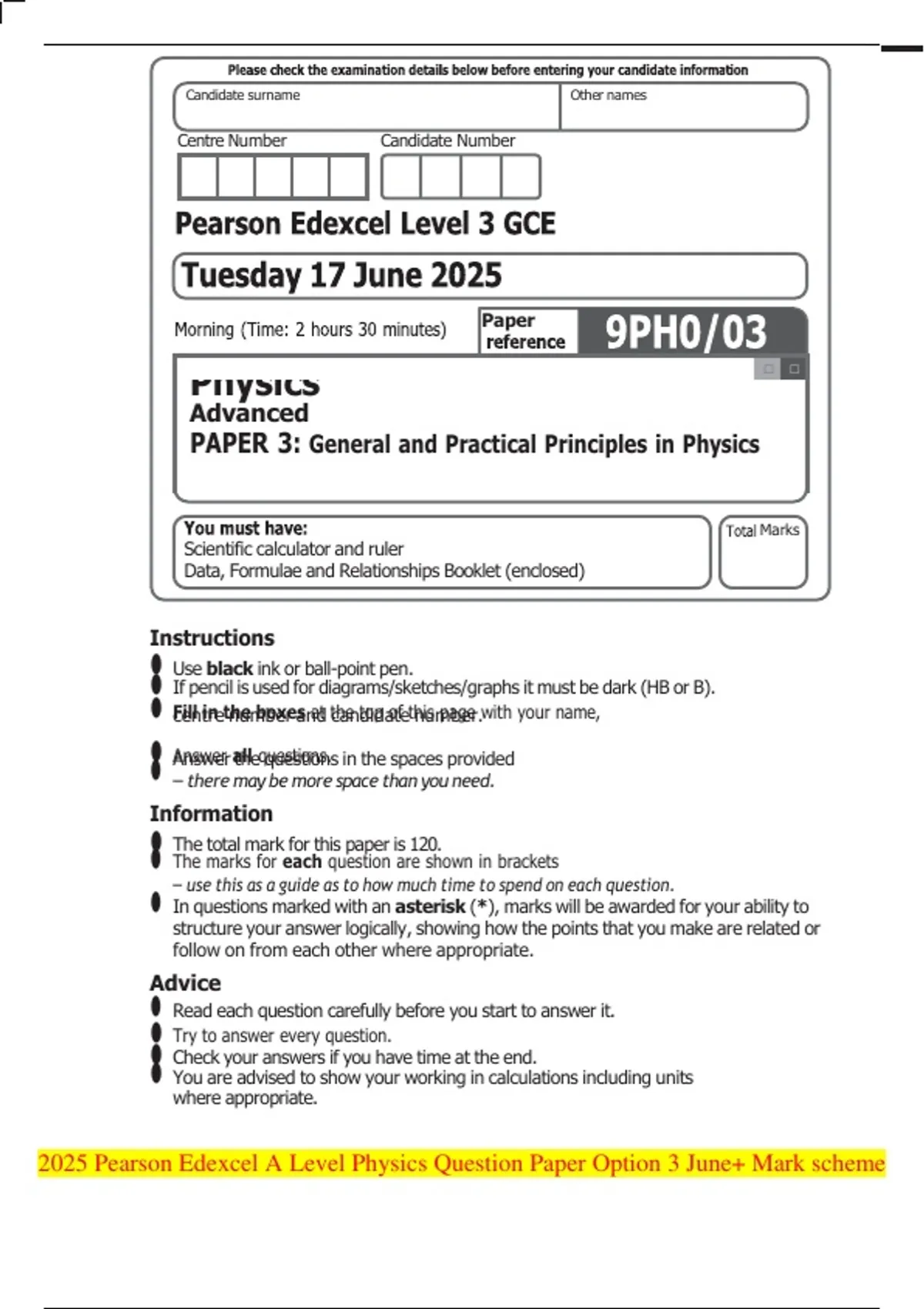 2025 Pearson Edexcel A Level Physics Question Paper Option 3 June+ Mark scheme