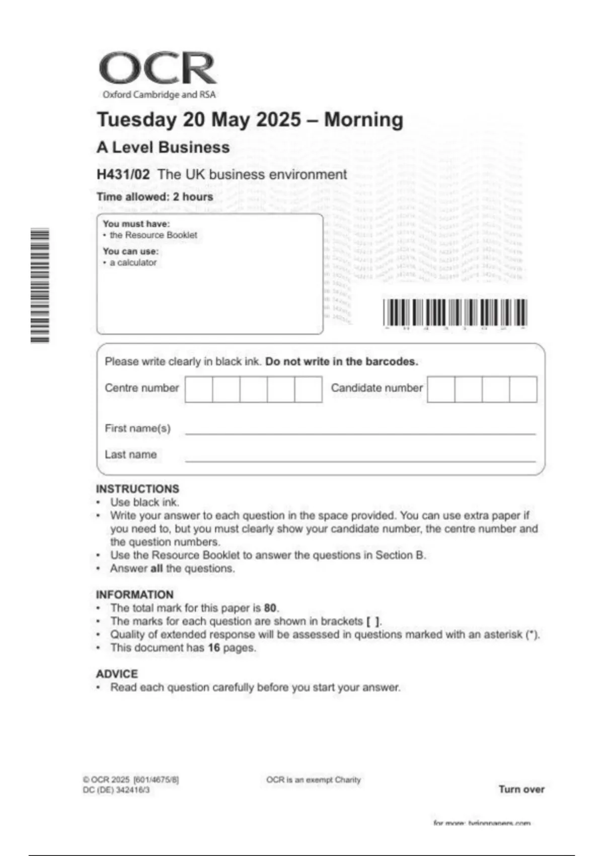 2025 OCR A Level BUSINESS paper 2| H431_02| June 2025 Question paper