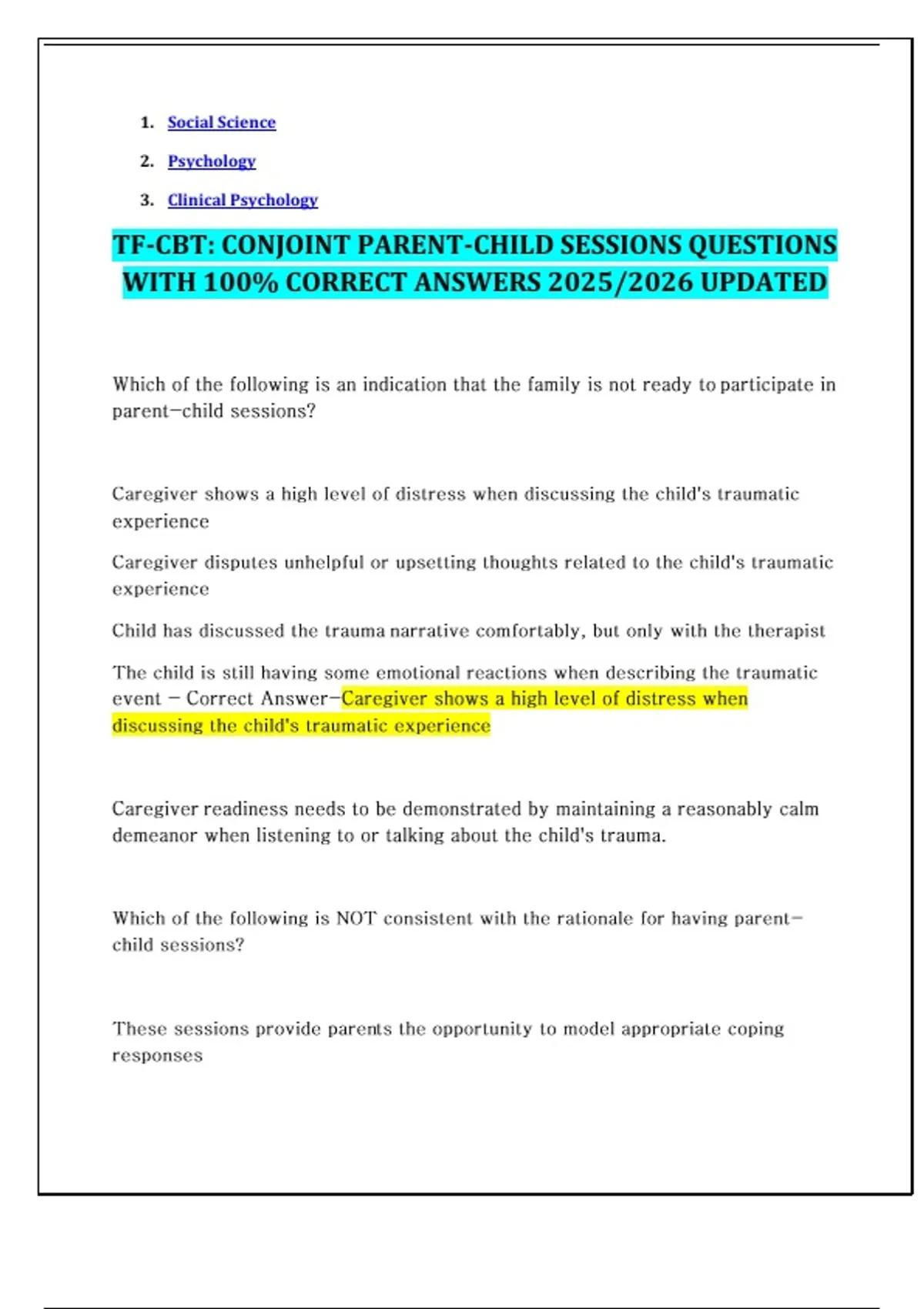 TF-CBT: CONJOINT PARENT-CHILD SESSIONS QUESTIONS WITH 100% CORRECT ANSWERS 2025/2026 UPDATED