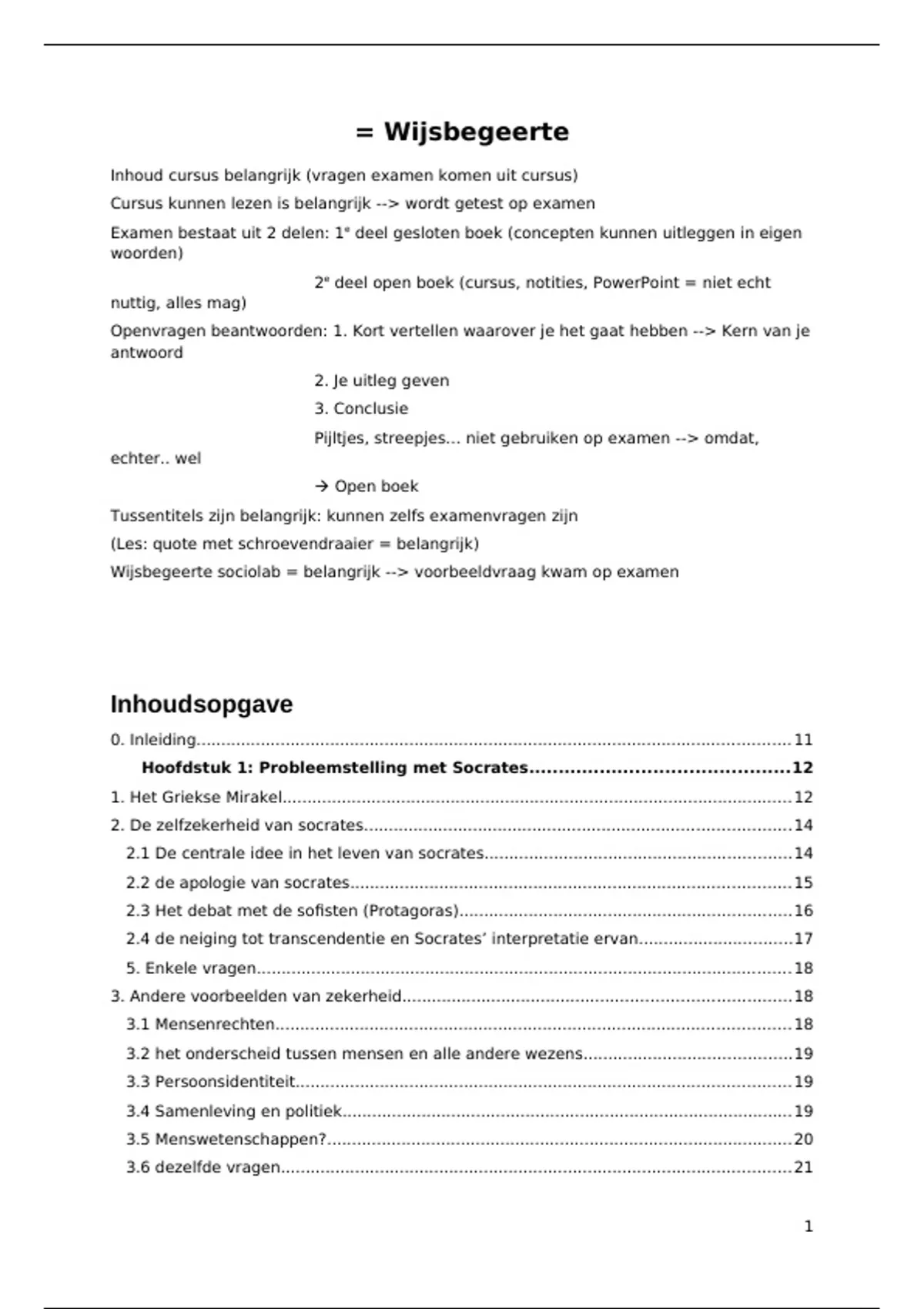Wijsbegeerte sociolab = belangrijk --> voorbeeldvraag kwam op examen