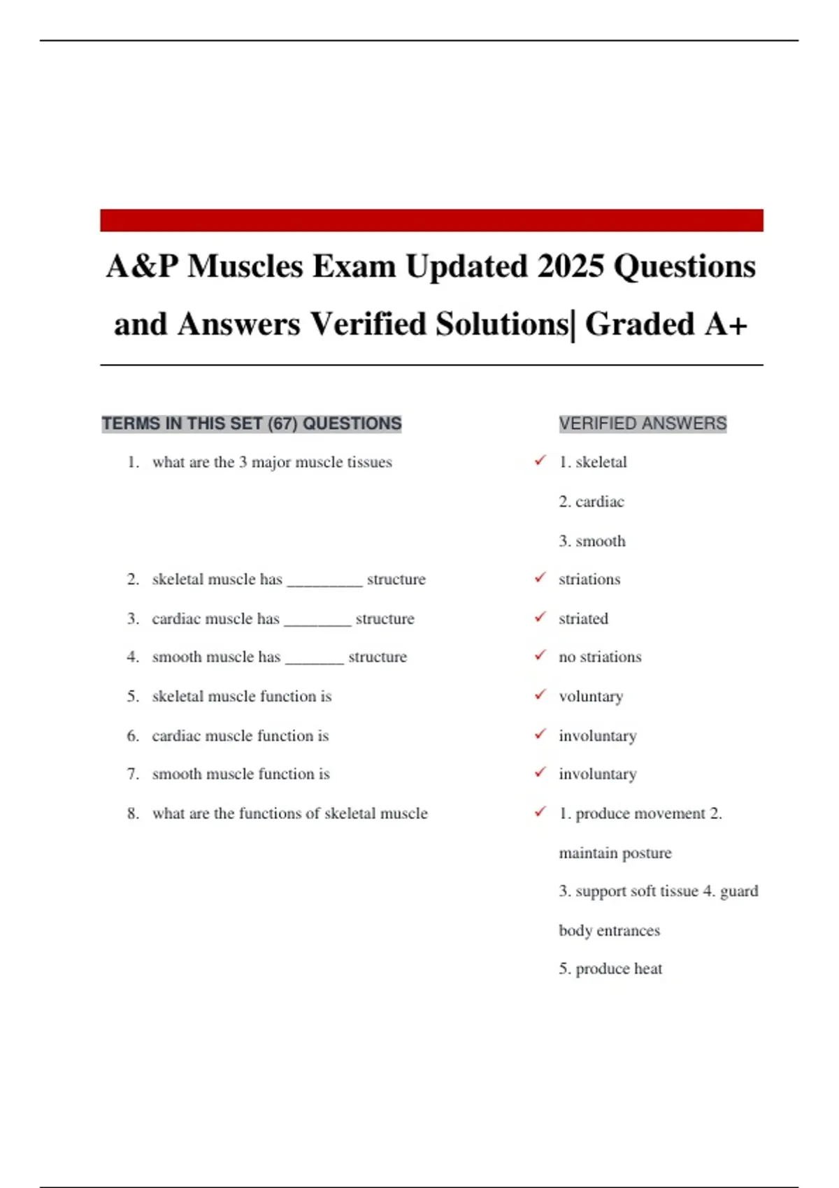 A&P Muscles Exam Updated 2025 Questions and Answers Verified Solutions| Graded A+