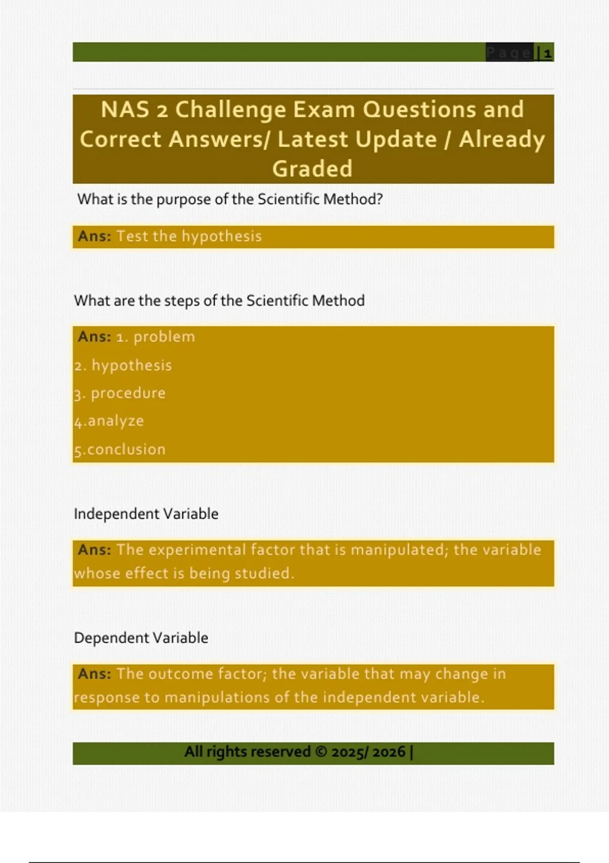 NAS 2 Challenge Exam Questions and