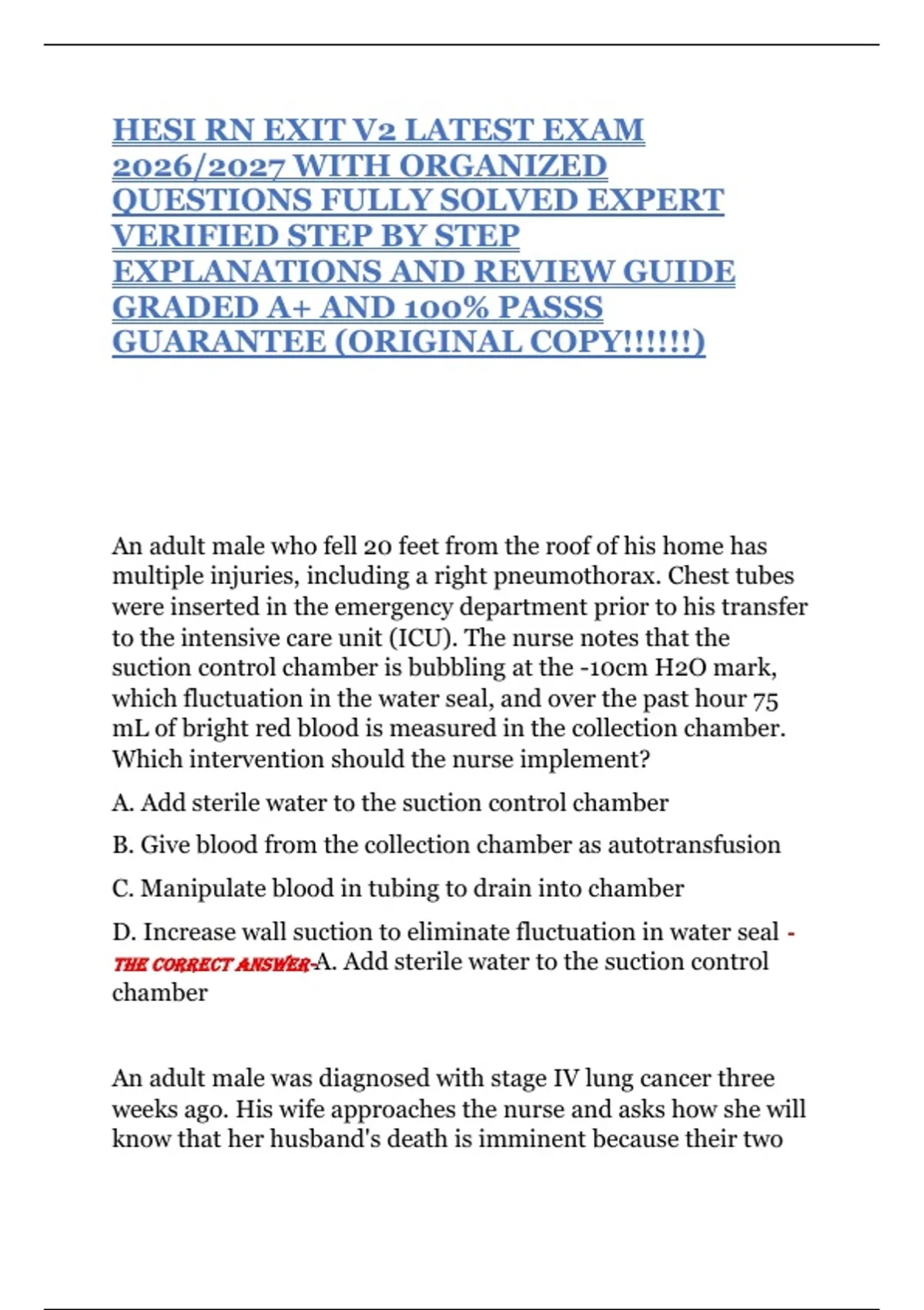 HESI RN Exit V2 Ultimate Review 2026–2027: Fully Solved Questions with Detailed Rationales for Top Performance