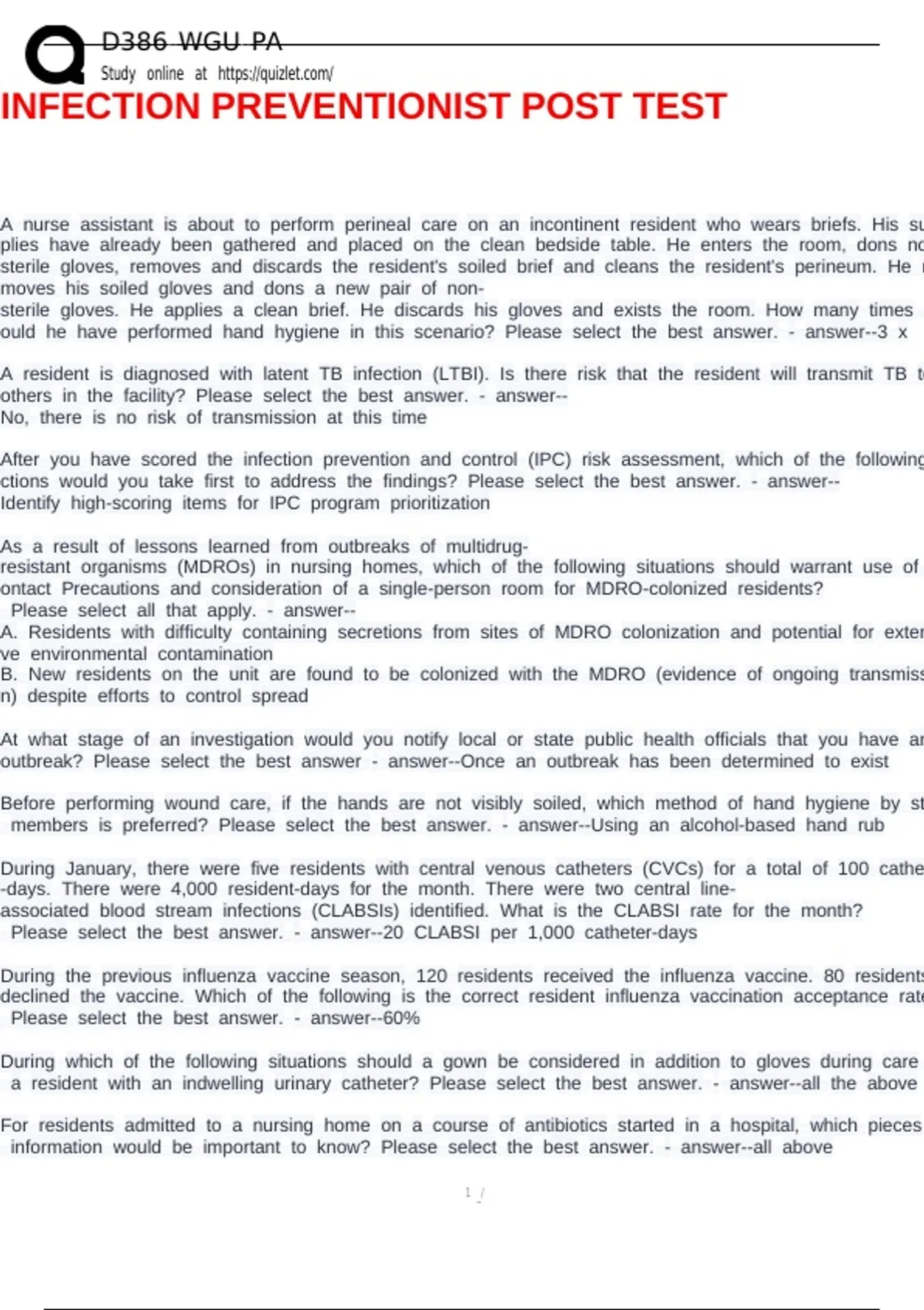 INFECTION PREVENTIONIST POST TEST