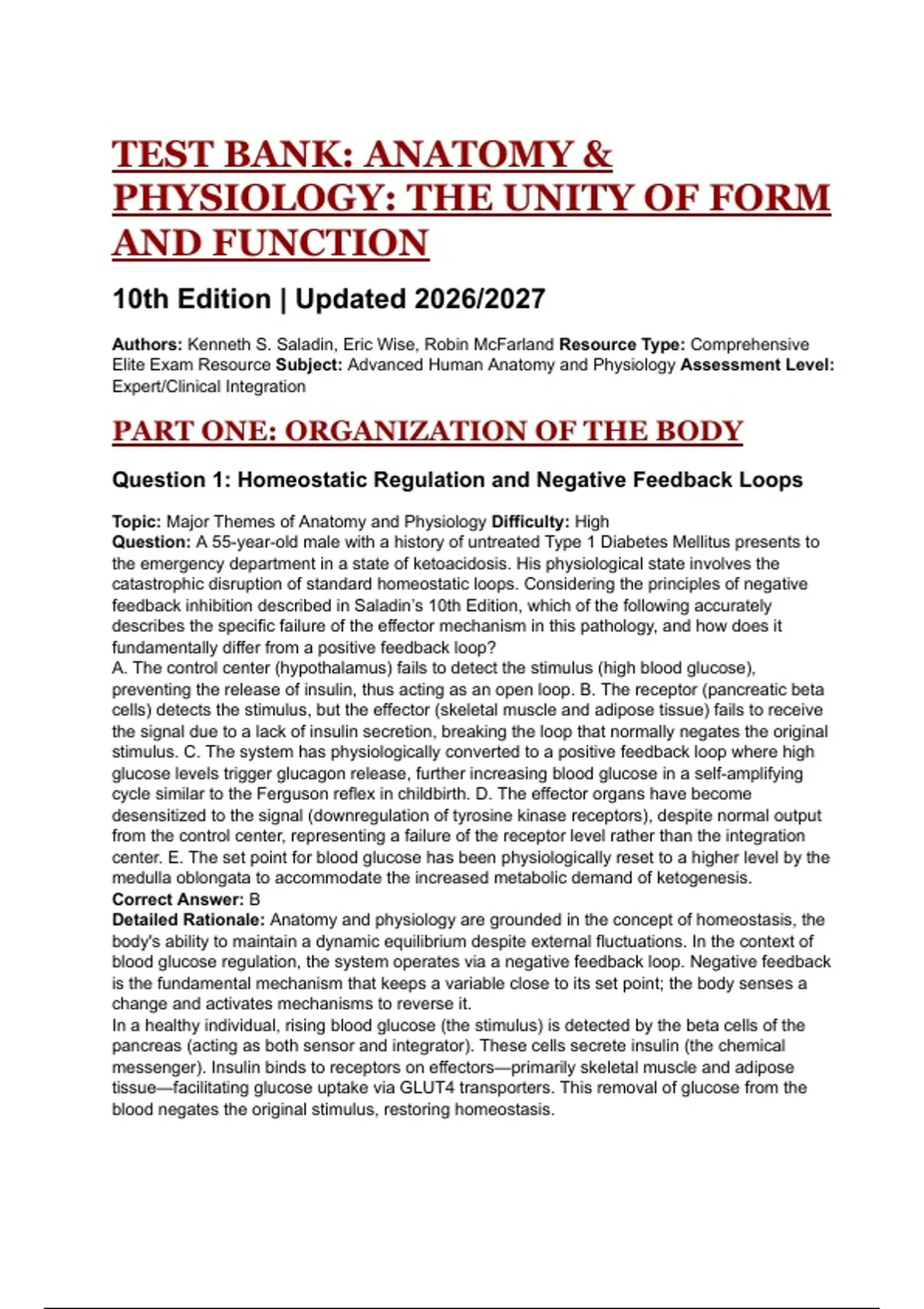 Elite Exam Resource Subject: Advanced Human Anatomy and Physiology Assessment Level: