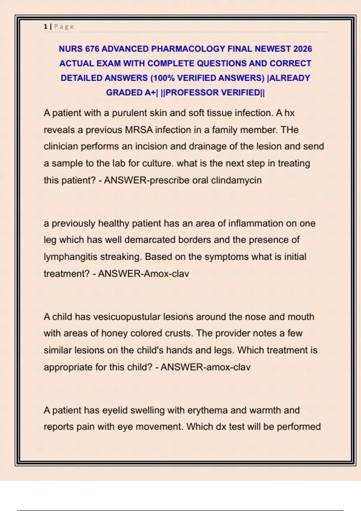 NURS 676 ADVANCED PHARMACOLOGY FINAL NEWEST 2026