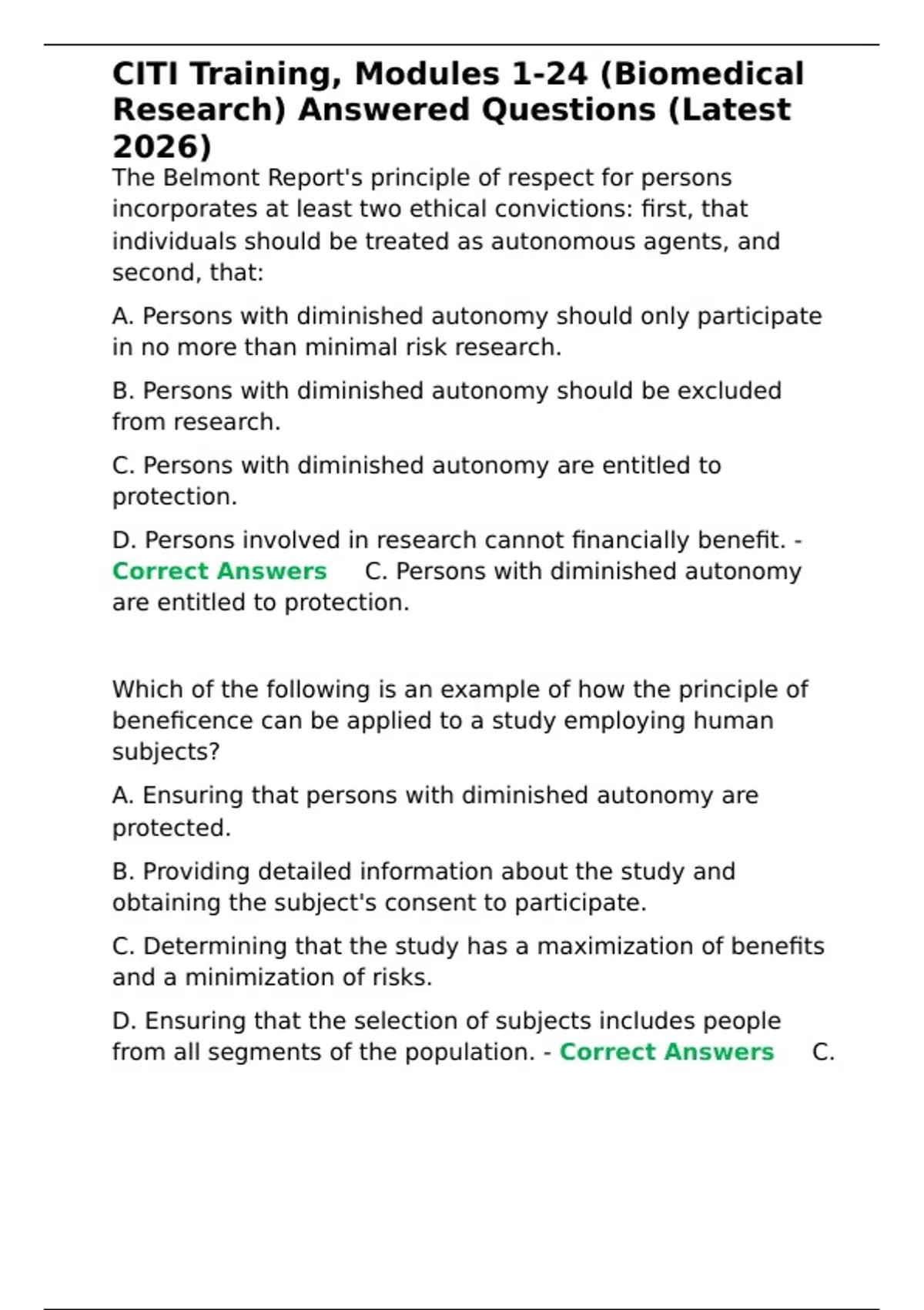 CITI Training, Modules 1-24 (Biomedical Research) Answered Questions (Latest 2026)