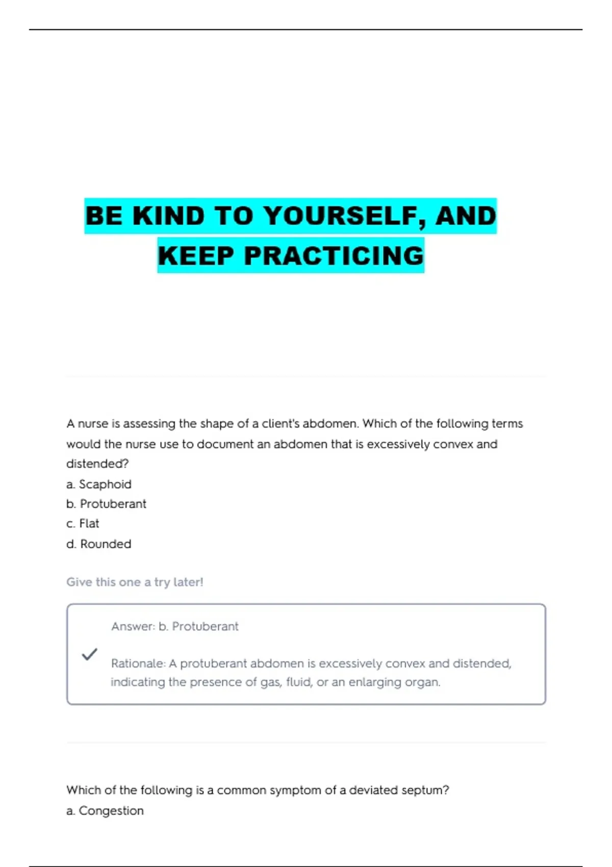 Rationale: Congestion is a common symptom of a deviated septum, which