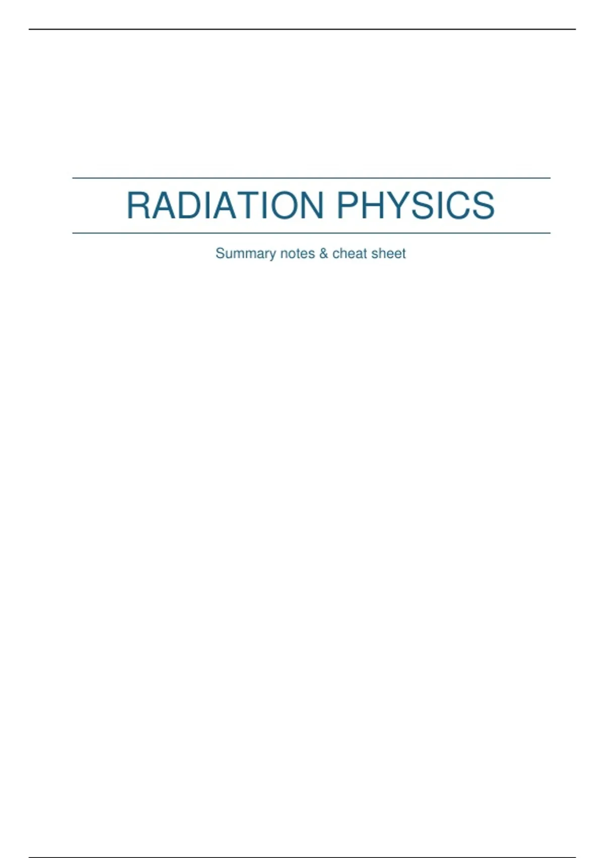 Radiation Physics Summary Notes + Cheat Sheet (For Radiotherapy & Medical Physics Students)