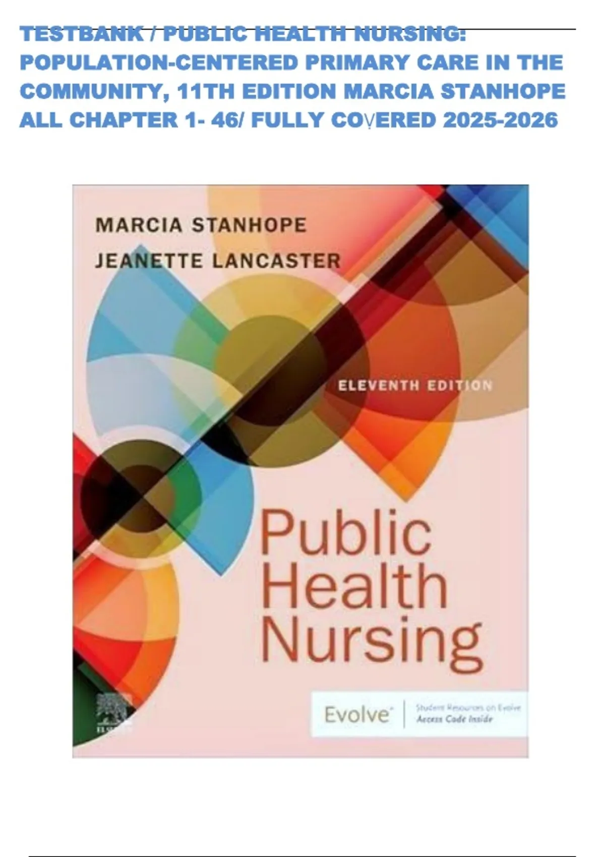 Latest TESTBANK / PUBLIC HEALTH NURSING: POPULATION-CENTERED PRIMARY CARE IN THE COMMUNITY, 11TH EDITION MARCIA STANHOPE ALL CHAPTER 1- 46/ FULLY COṾERED / Highly RATED A+/ Fully covered
