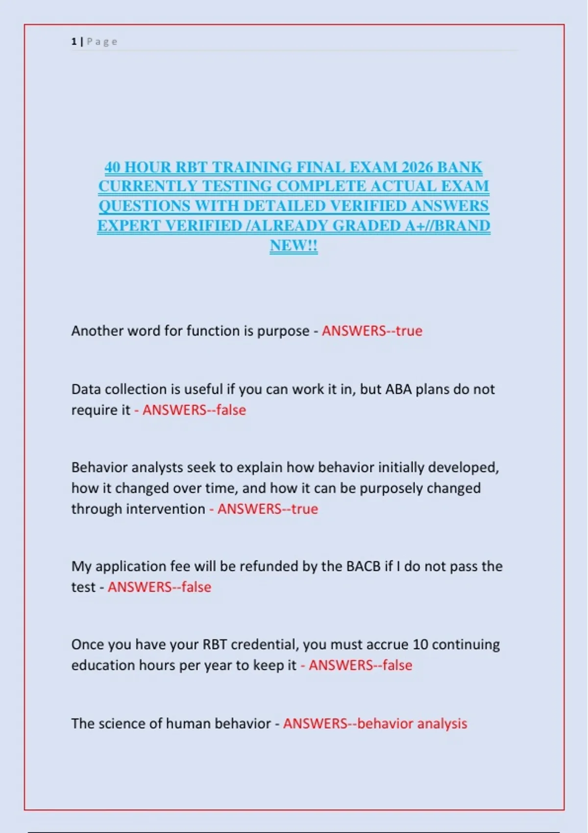 40 HOUR RBT TRAINING FINAL EXAM 2026 BANK