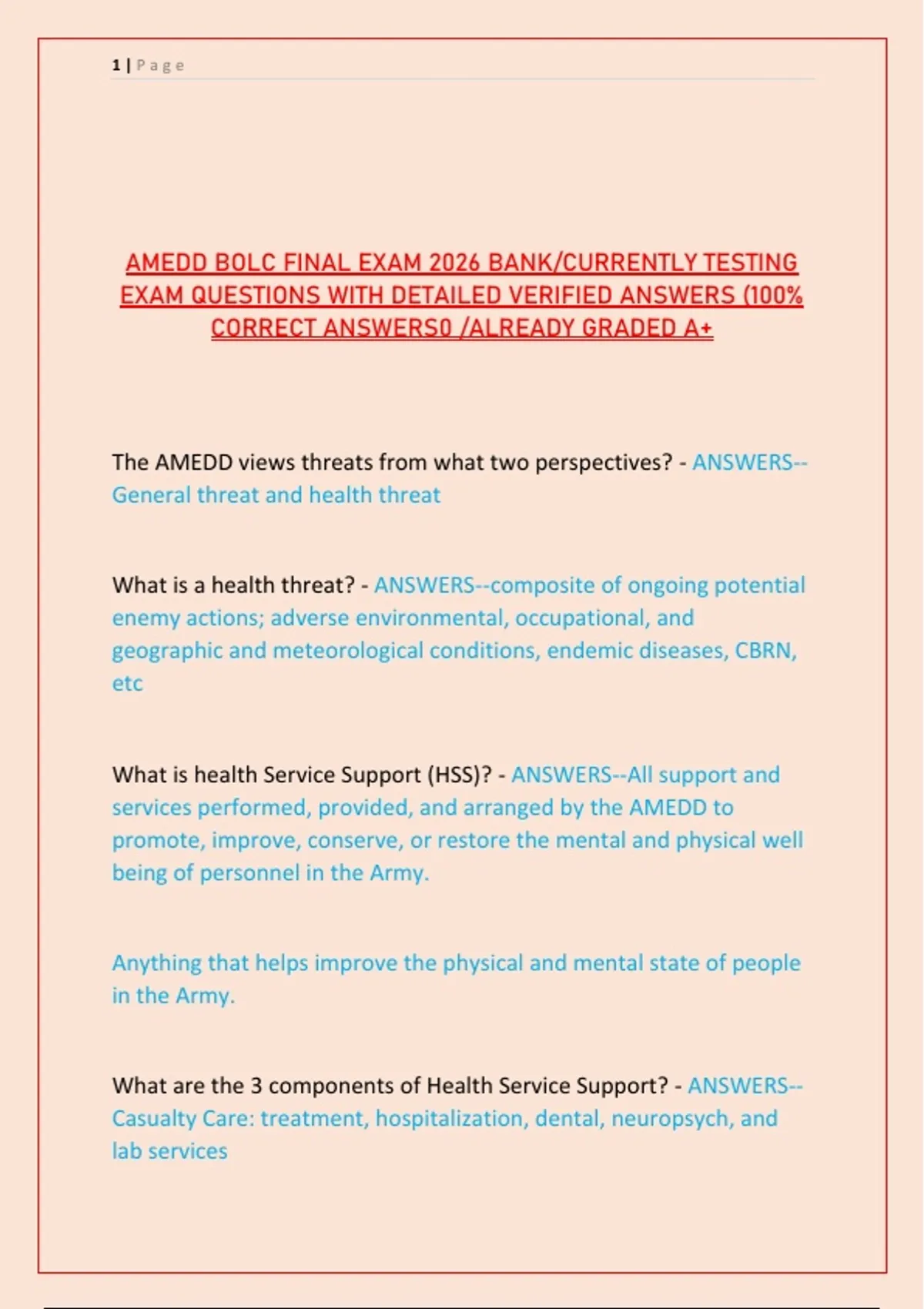 AMEDD BOLC FINAL EXAM 2026 BANK/CURRENTLY TESTING