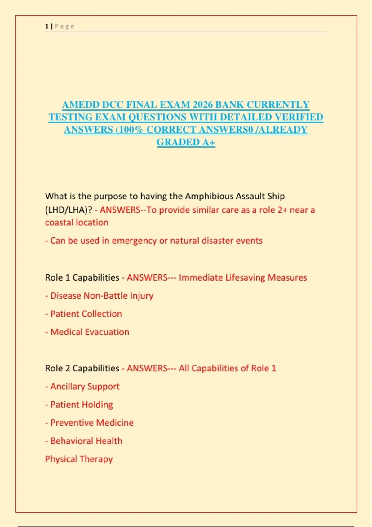 AMEDD DCC FINAL EXAM 2026 BANK CURRENTLY