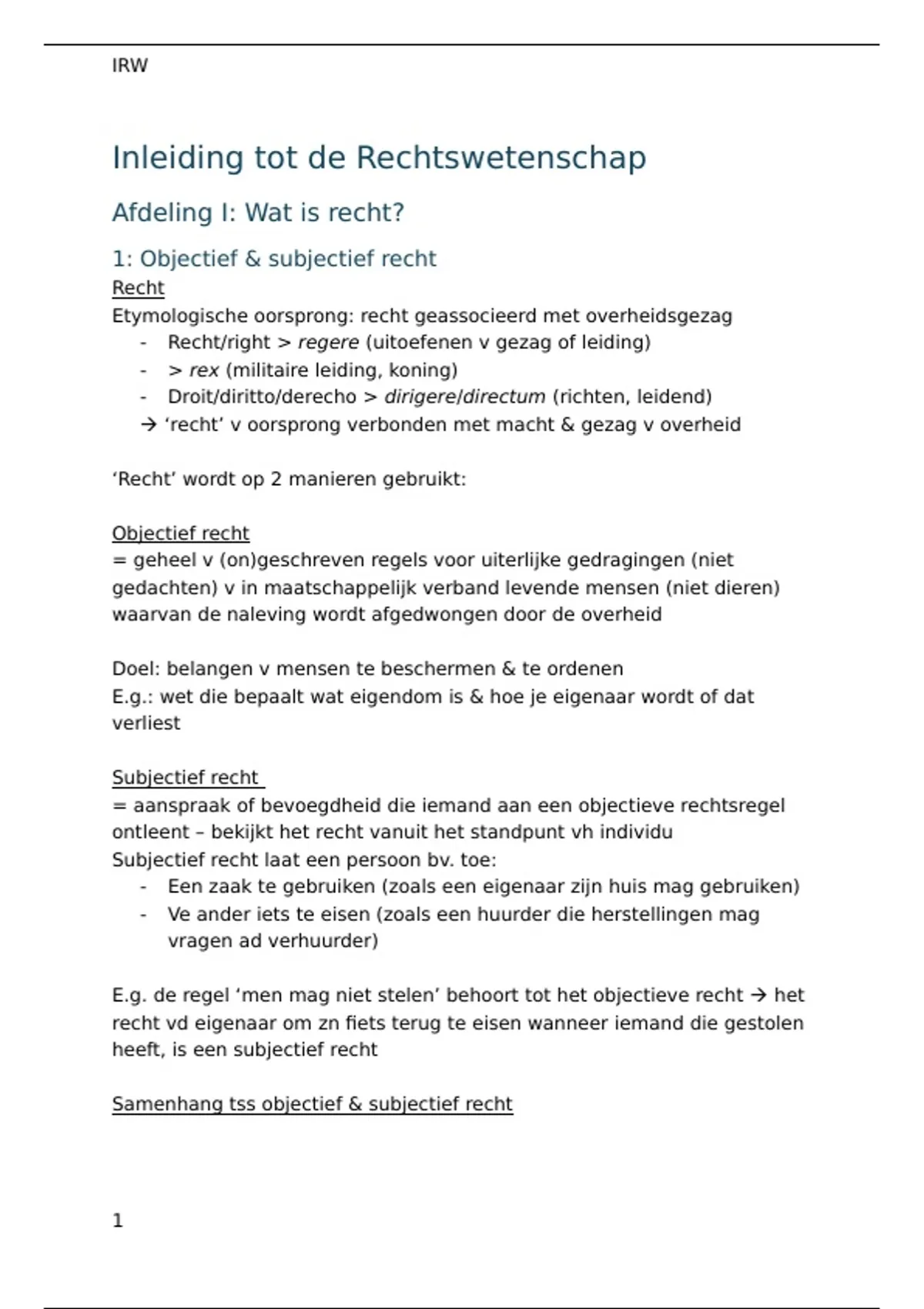 1: Objectief & subjectief recht