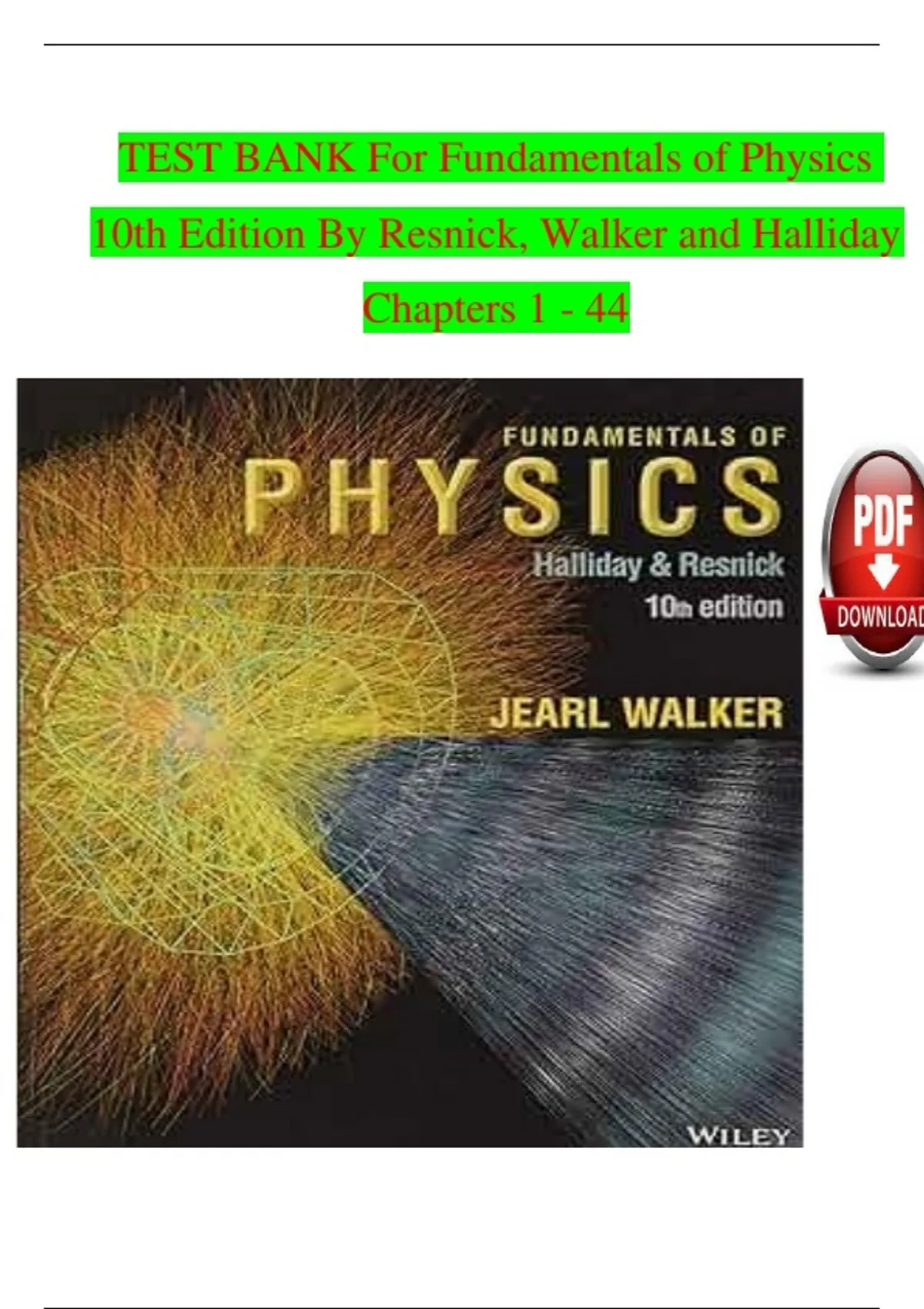 Test Bank for Fundamentals of Physics, 10th Edition by David Halliday, Robert Resnick & Jearl Walker – Exam Prep – Latest Update 2026