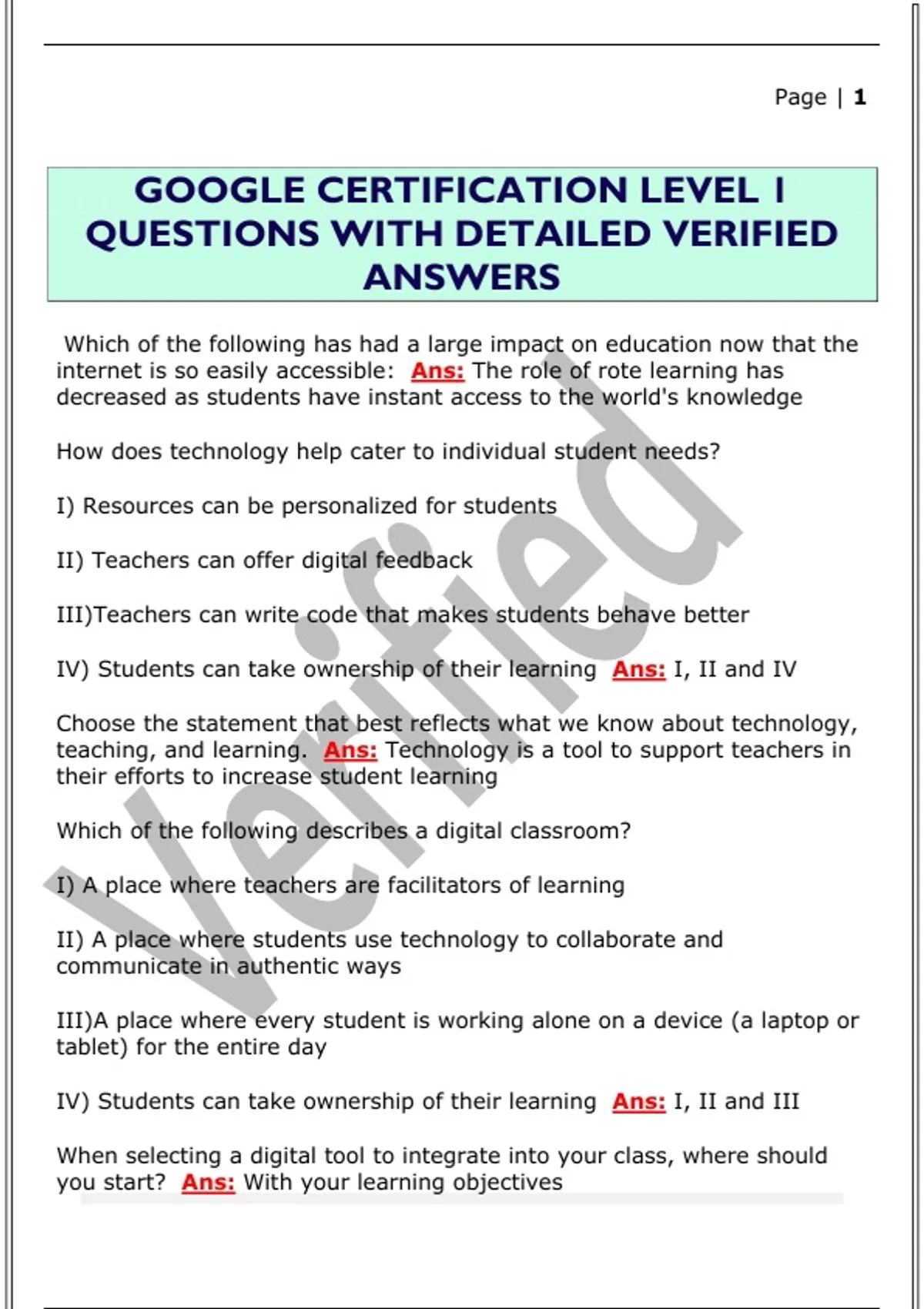 GOOGLE CERTIFICATION LEVEL 1 QUESTIONS WITH DETAILED VERIFIED ANSWERS