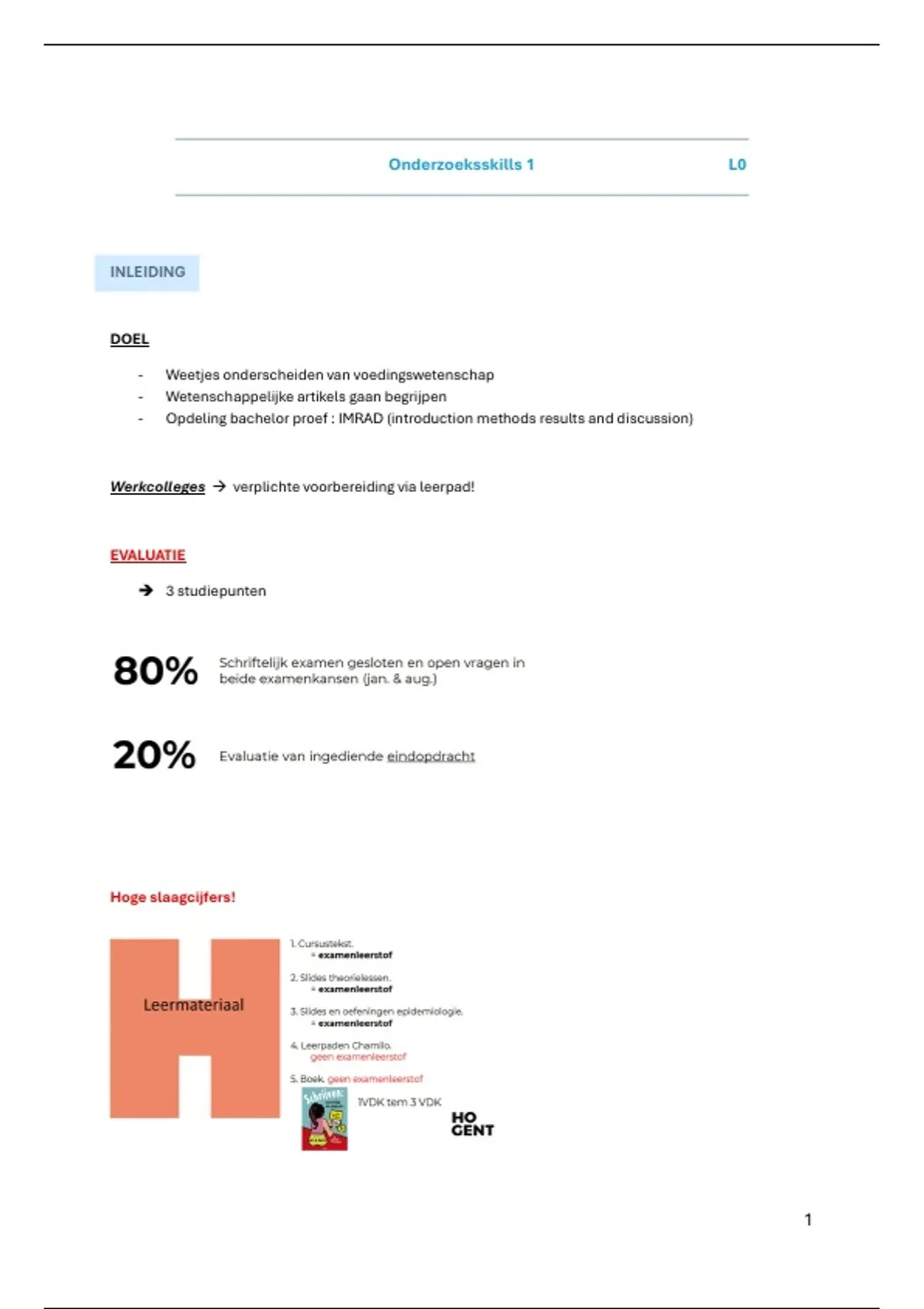 Samenvatting - Onderzoeksskills - voedings- en dieetkunde