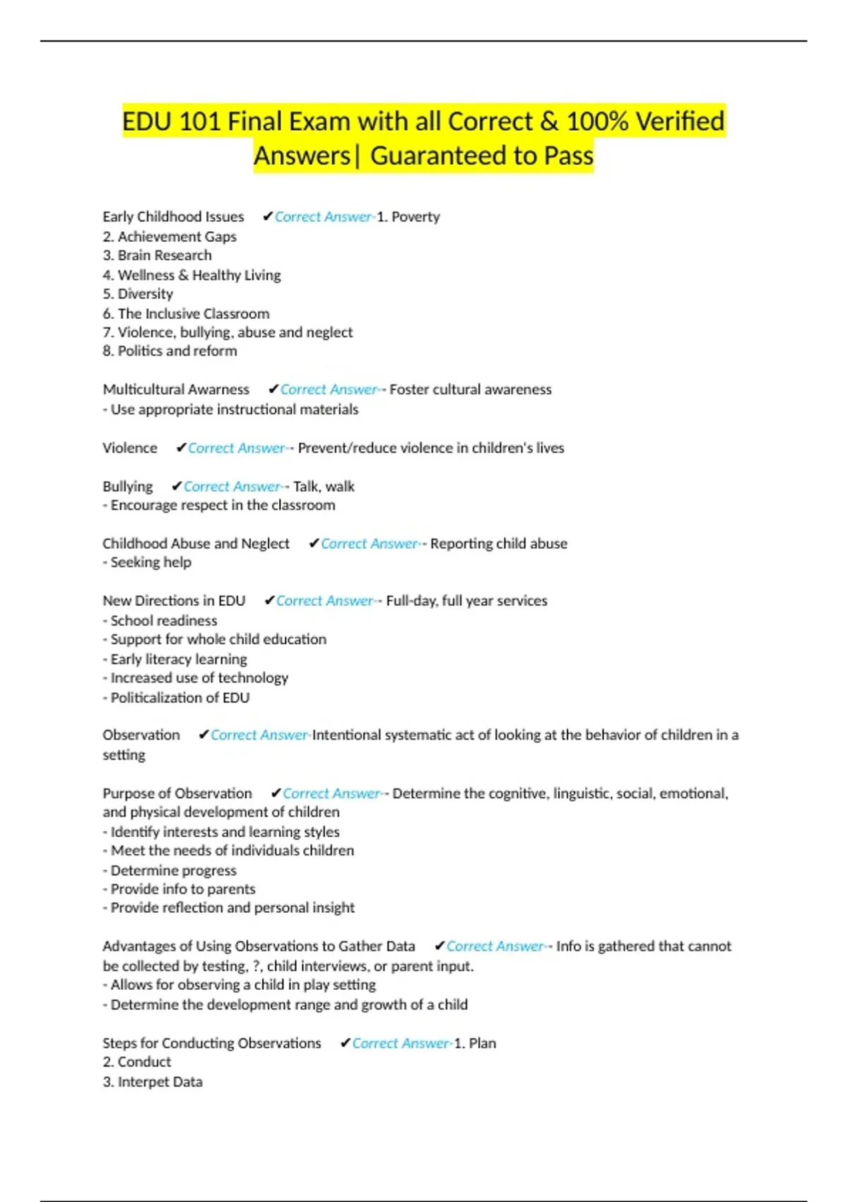 Early Childhood Issues ✔Correct Answer-1. Poverty