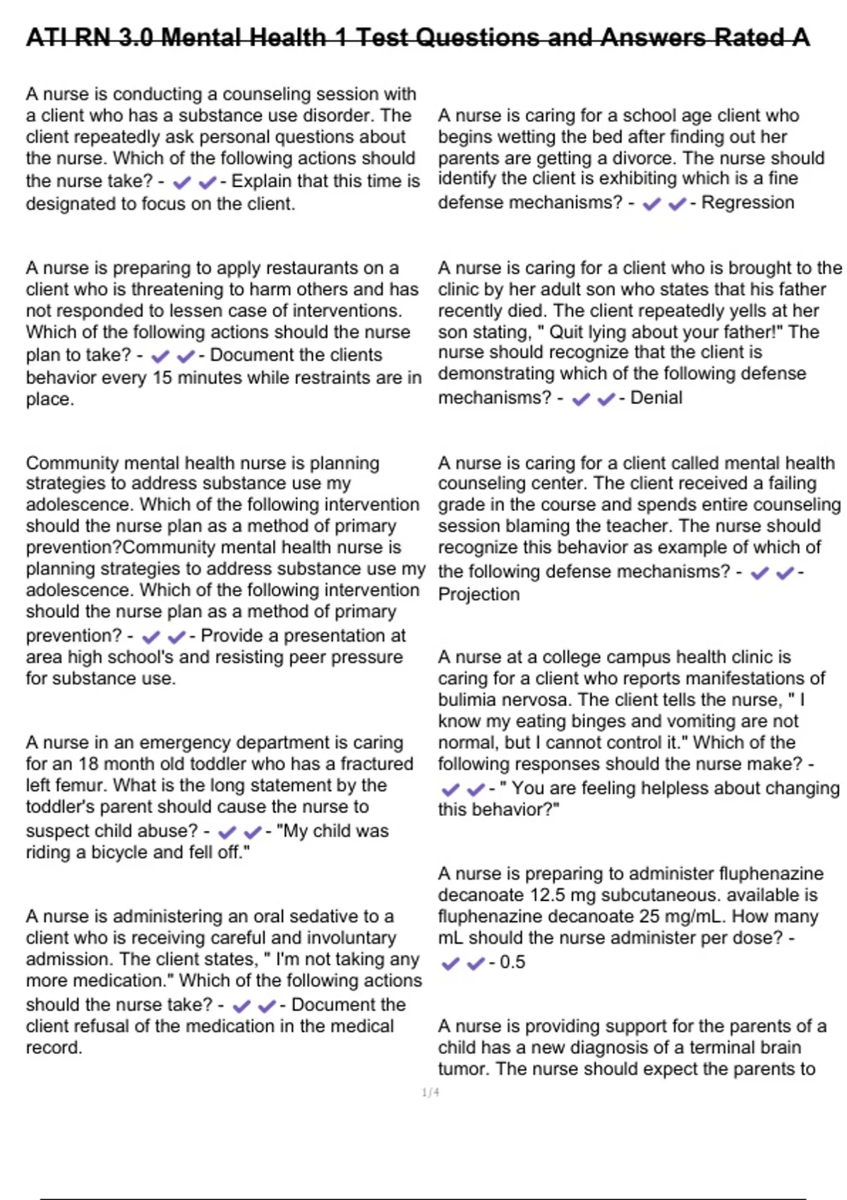 ATI RN 3.0 Mental Health 1 Test Questions and Answers Rated A