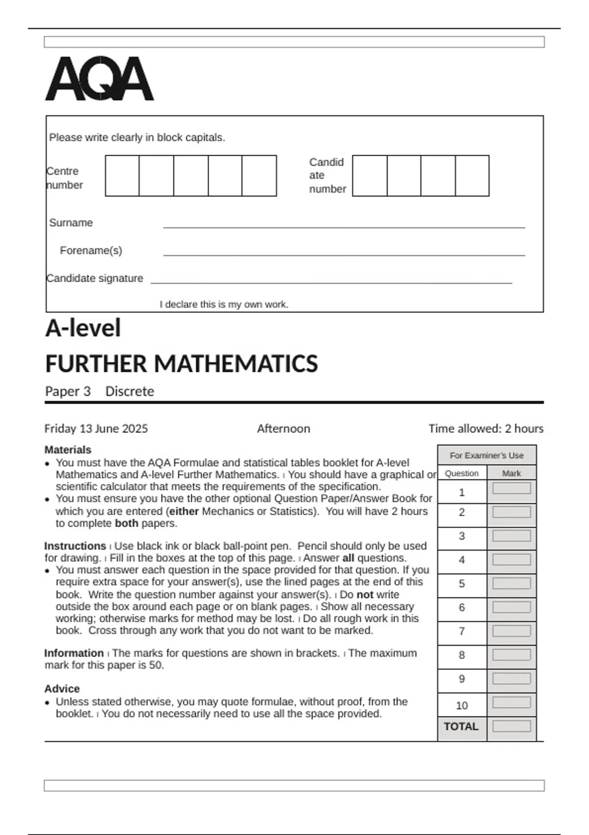 Friday 13 June 2025 Afternoon Time allowed: 2 hours