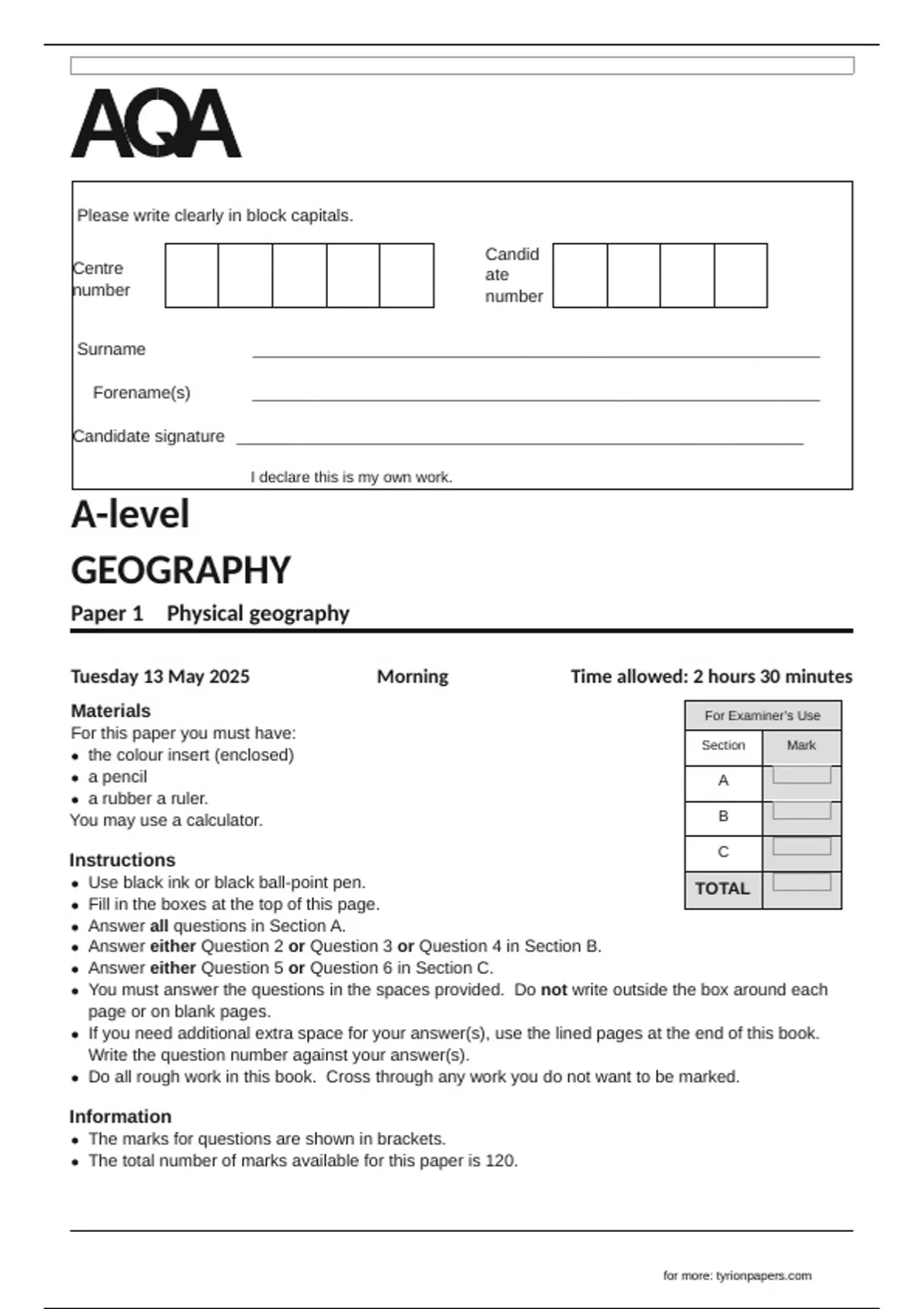 Tuesday 13 May 2025 Morning Time allowed: 2 hours 30 minutes