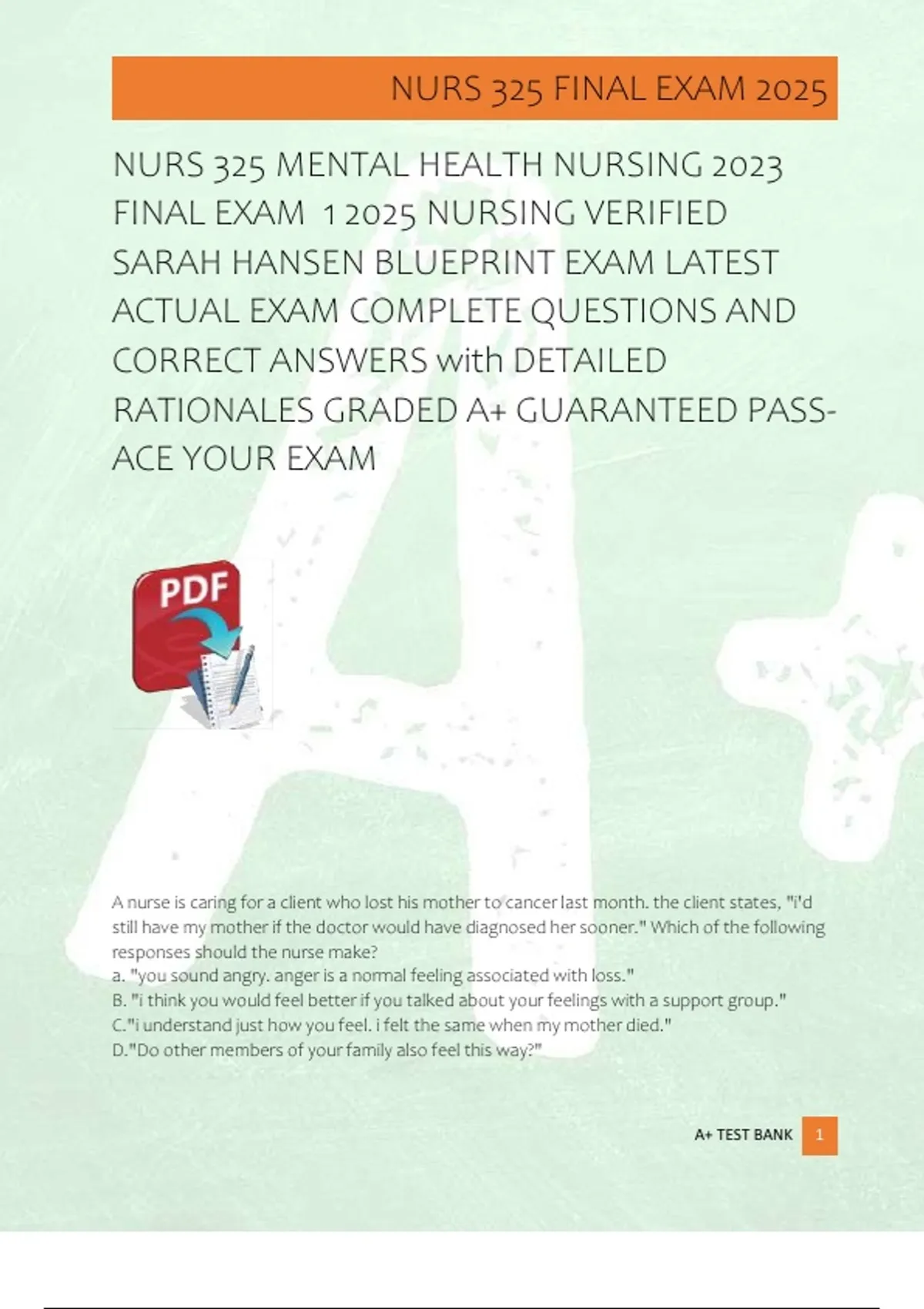 FINAL EXAM 1 2025 NURSING VERIFIED