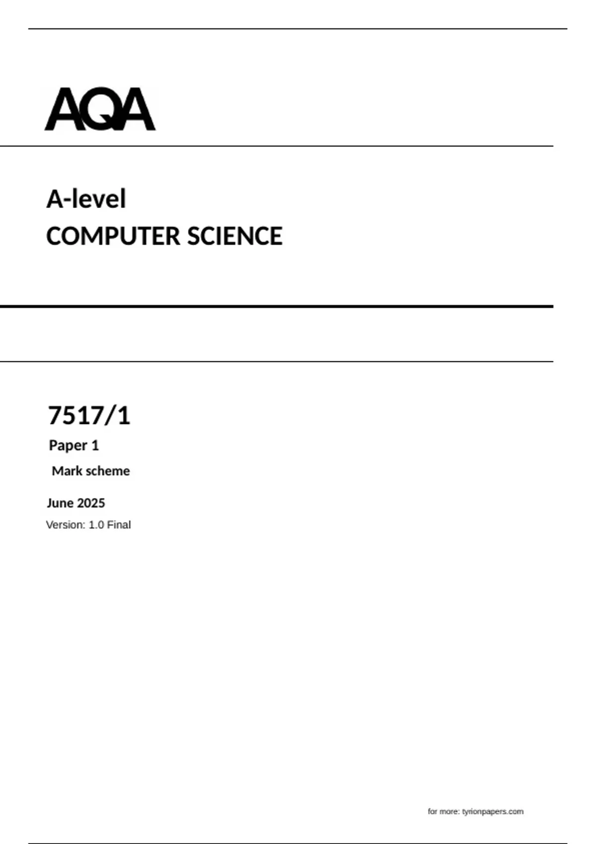 , MARK SCHEME – A-LEVEL COMPUTER SCIENCE – 7517/1 – JUNE 2025