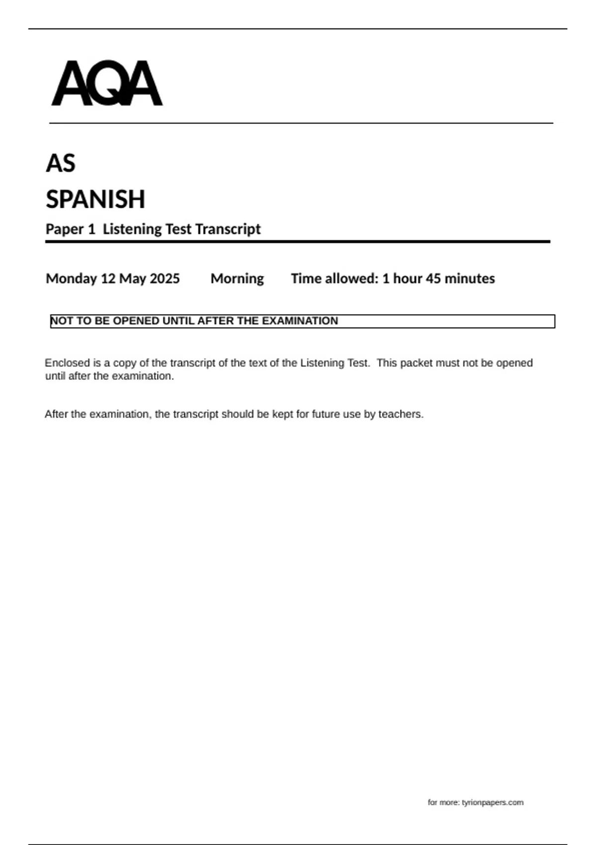 Monday 12 May 2025 Morning Time allowed: 1 hour 45 minutes