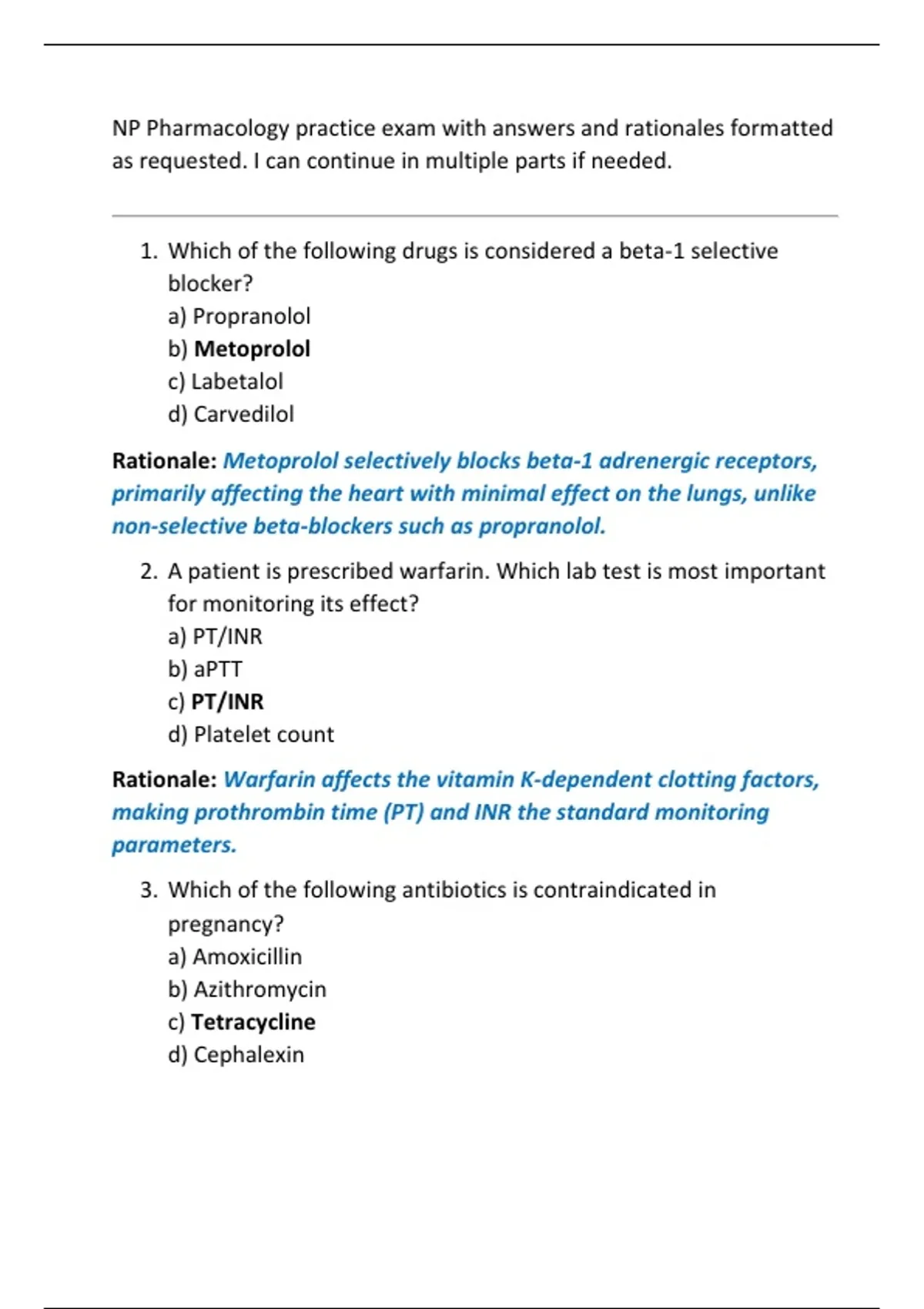 Rationale: Metoprolol selectively blocks beta-1 adrenergic receptors,
