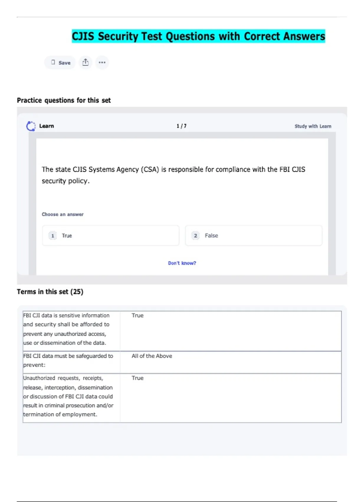 CJIS Security Test Questions with Correct Answers