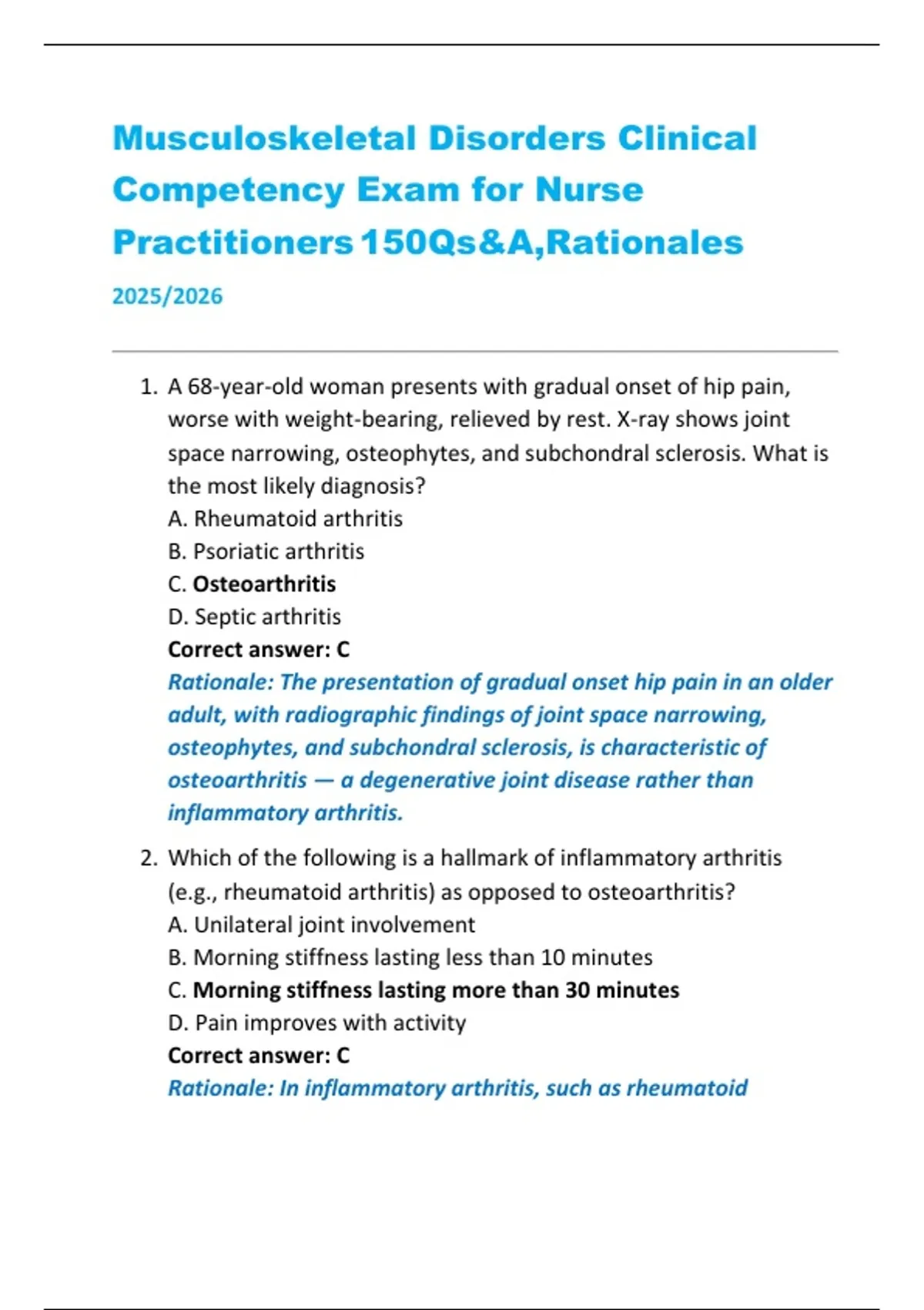 1. A 68-year-old woman presents with gradual onset of hip pain,