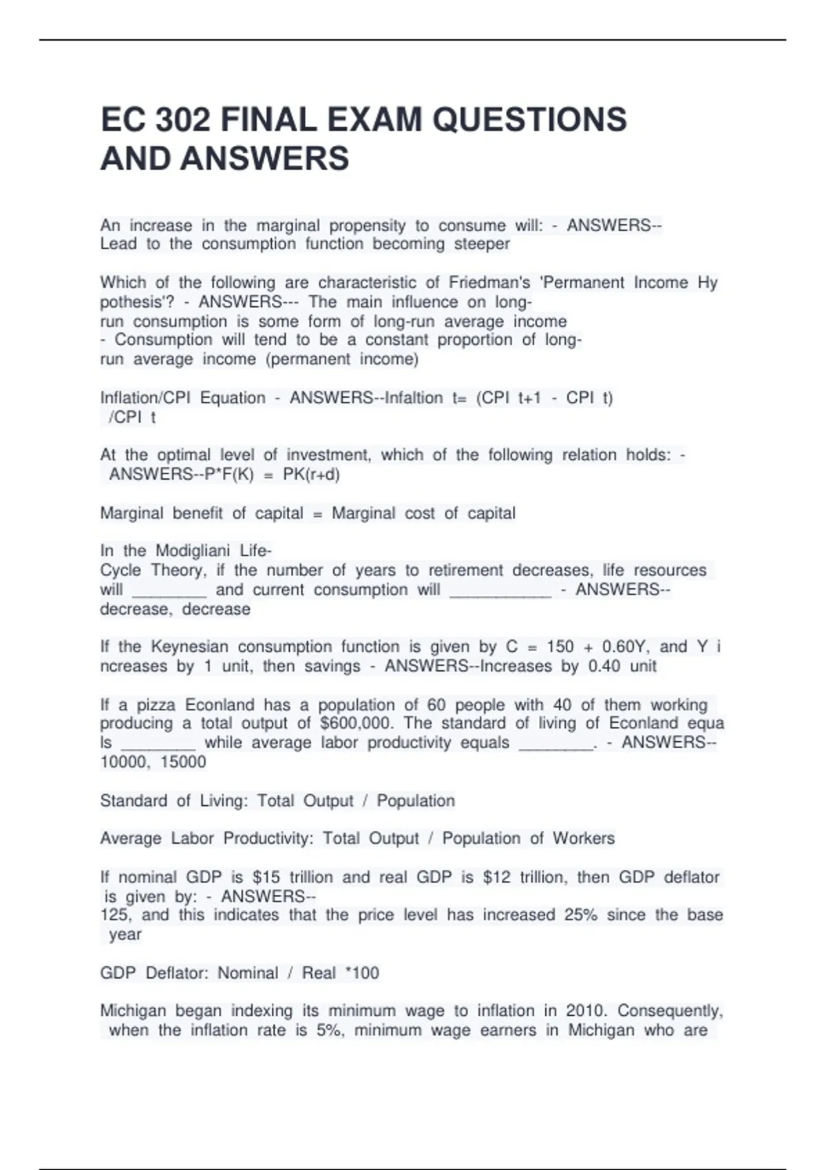 EC 302 FINAL EXAM QUESTONS AND ANSWERS