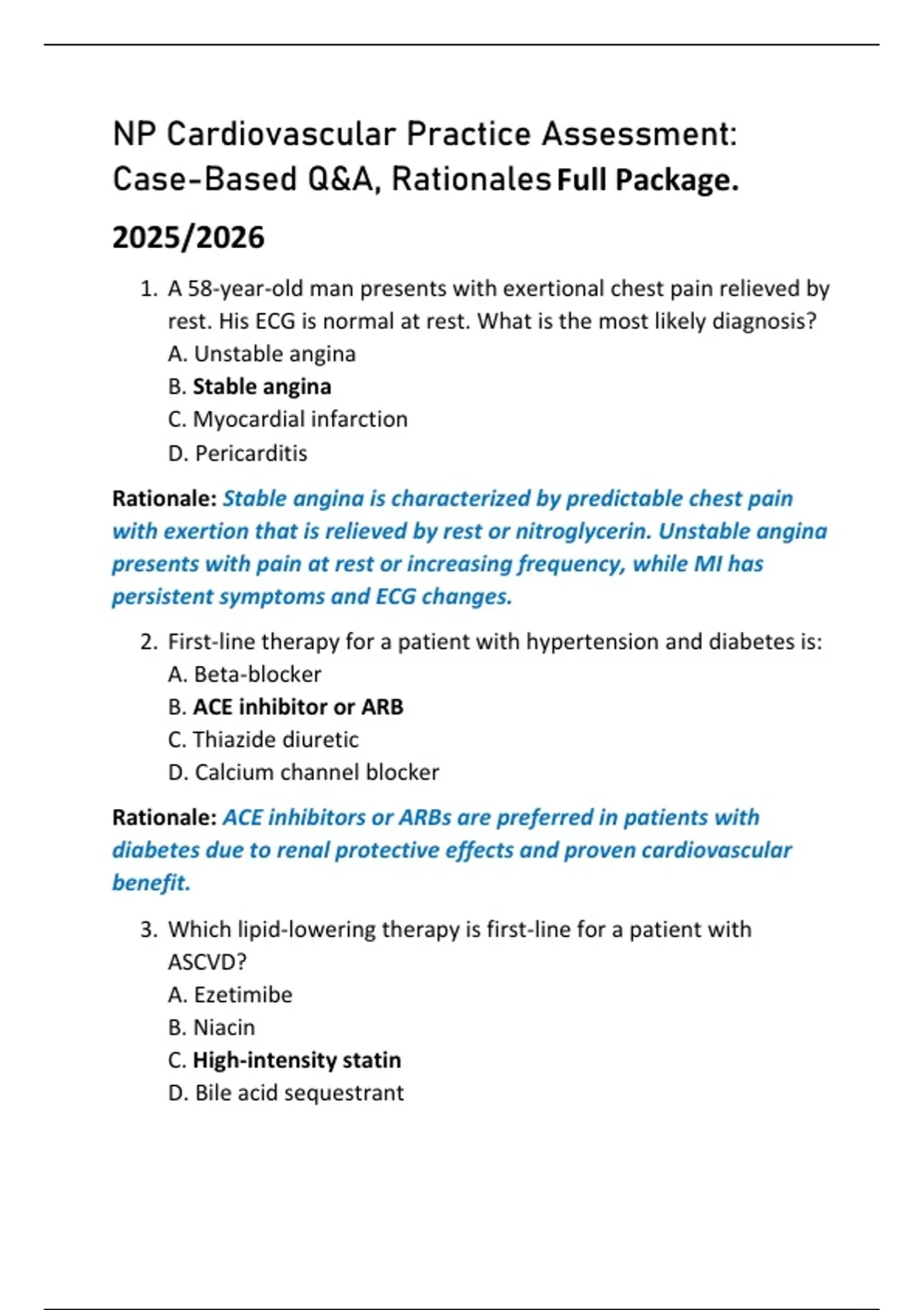1. A 58-year-old man presents with exertional chest pain relieved by