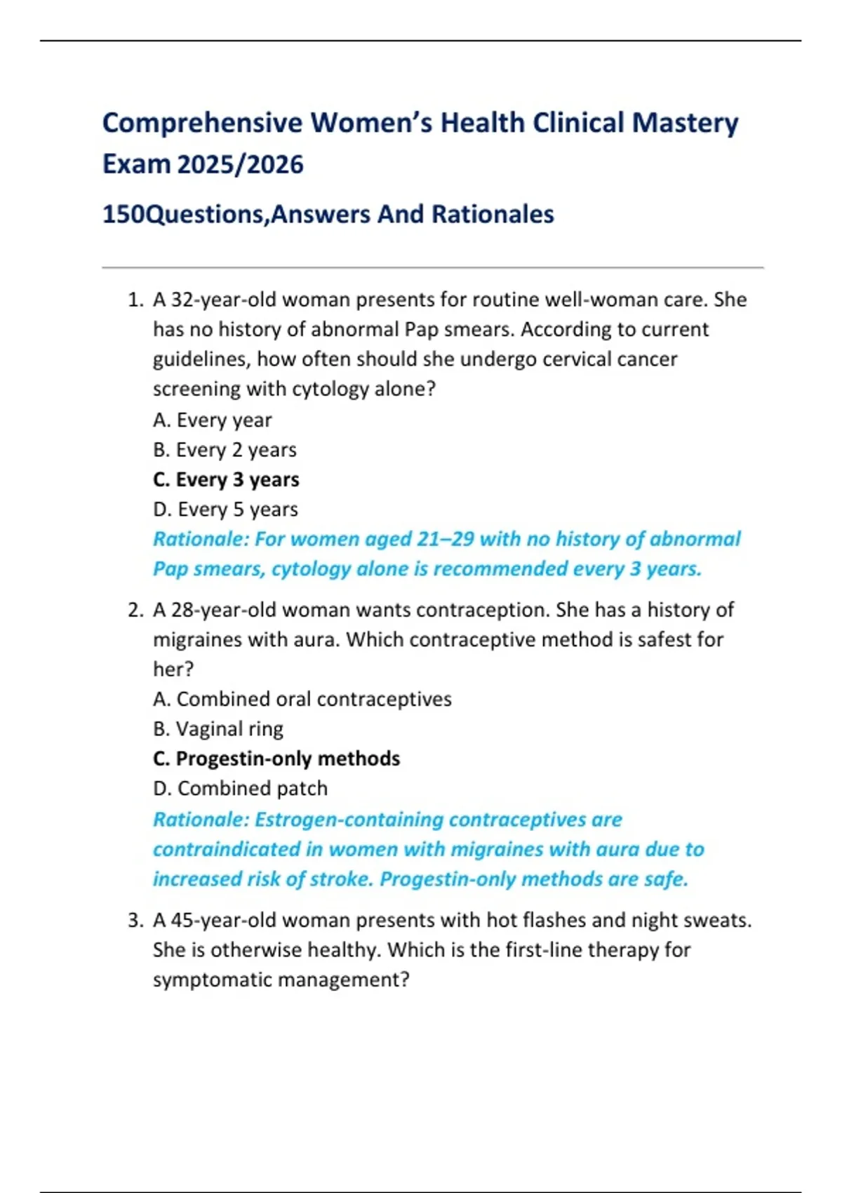 Comprehensive Women’s Health Clinical Mastery Exam 2025/2026 150Questions,Answers And Rationales