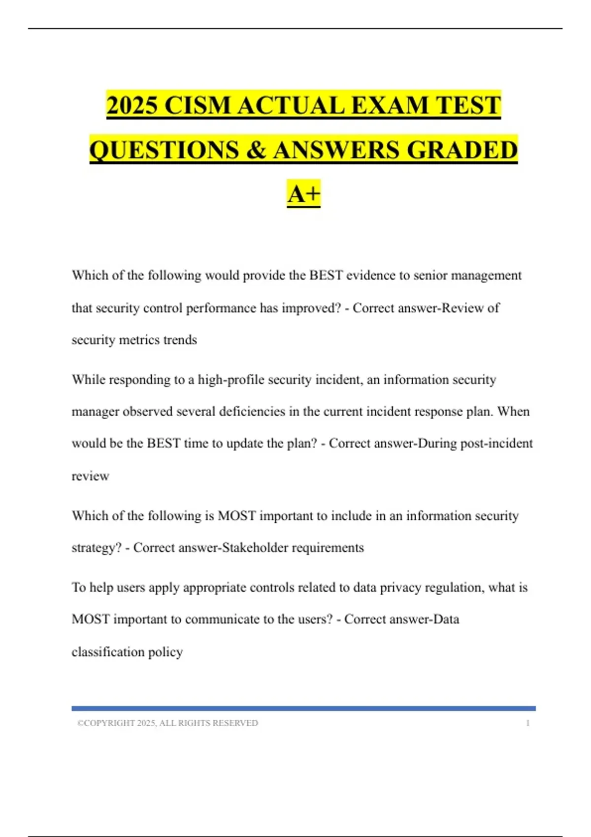 2025 CISM ACTUAL EXAM TEST QUESTIONS & ANSWERS GRADED A+