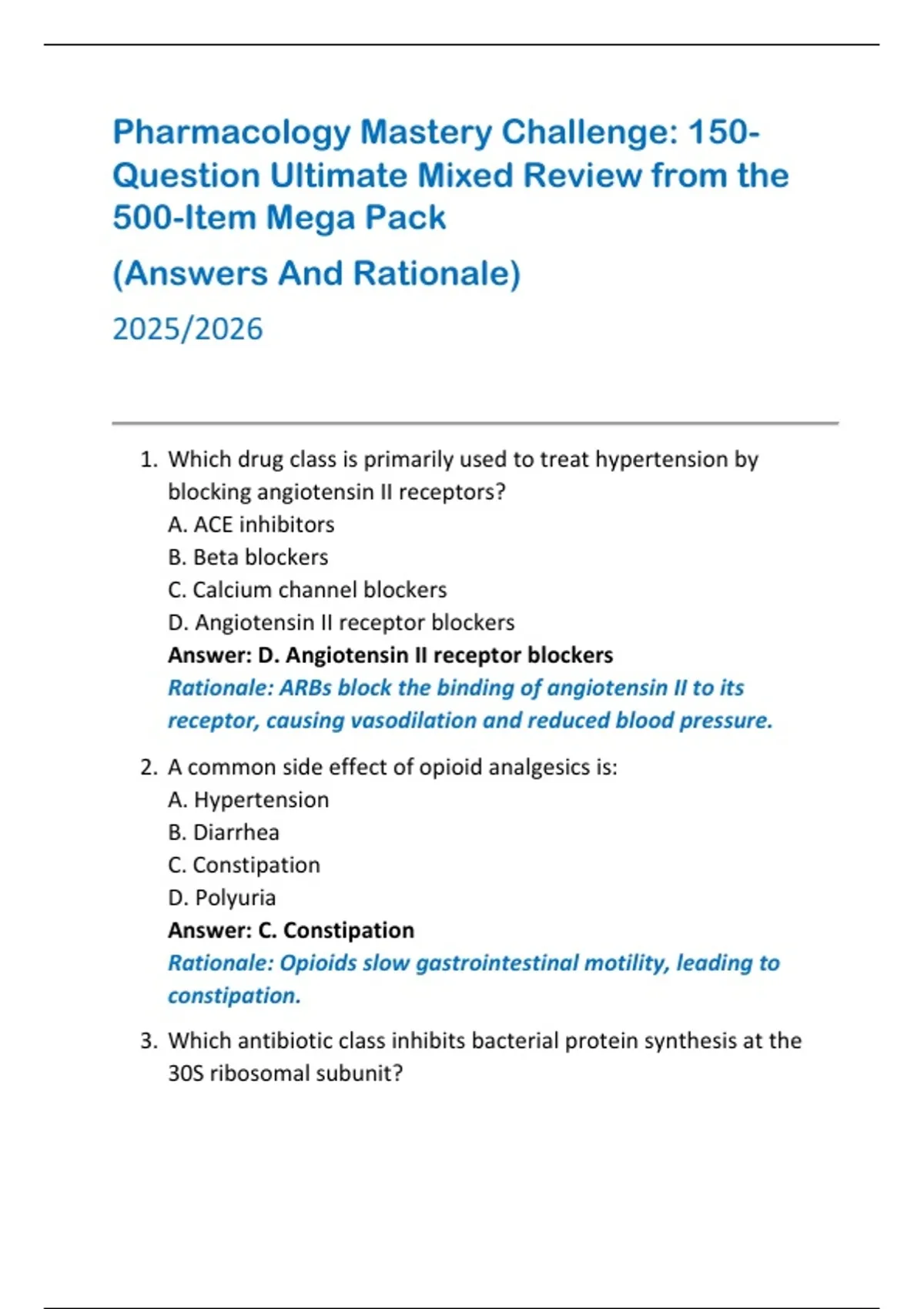 Pharmacology Mastery Challenge: 150-