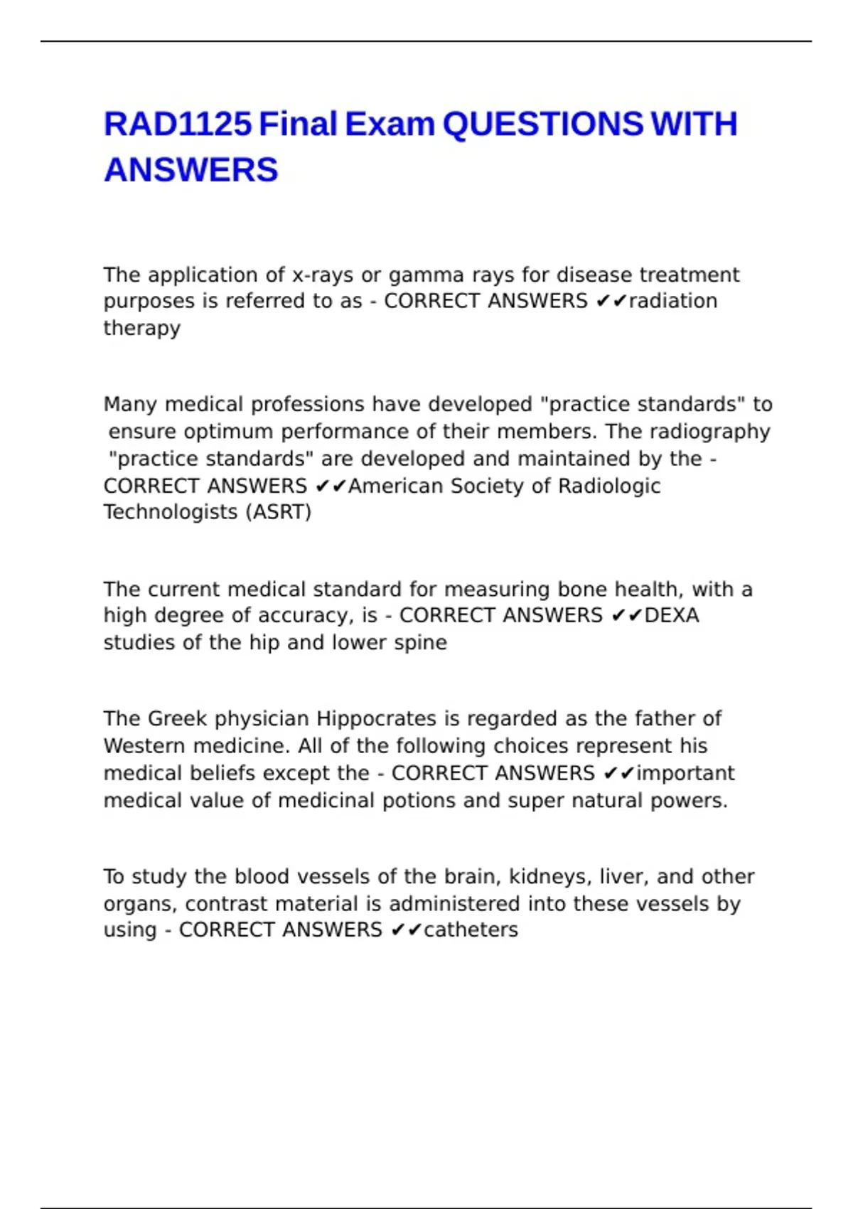 RAD1125 Final Exam QUESTIONS WITH ANSWERS